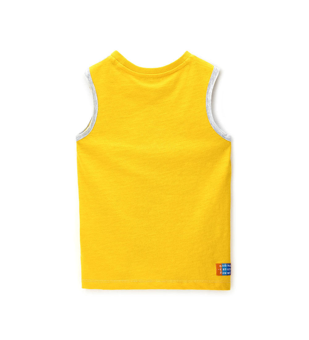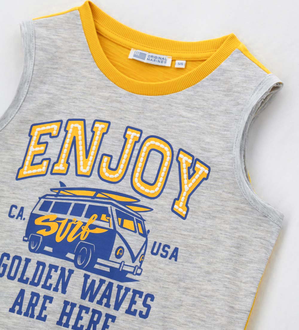 Débardeur col rond en coton flammé avec finitions côtelées, imprimé sur le devant et étiquette brodée au dos.