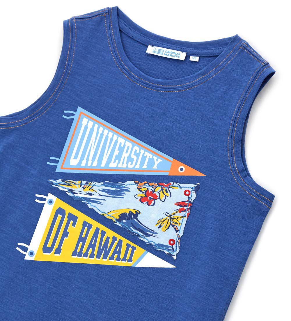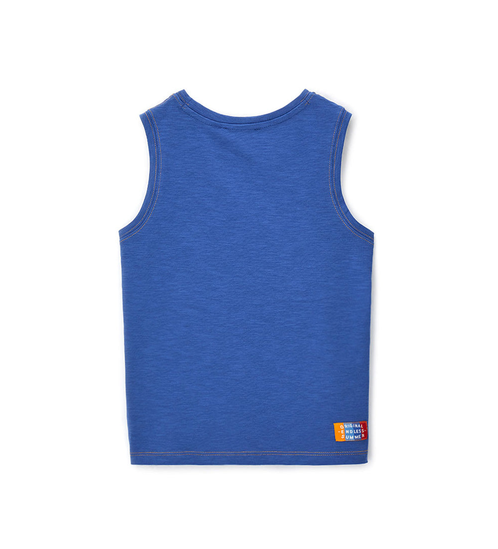 Débardeur en coton à col ras du cou avec imprimé et appliqué sur le devant et étiquette brodée au dos.