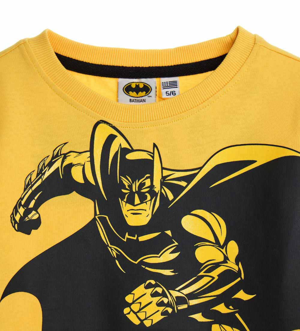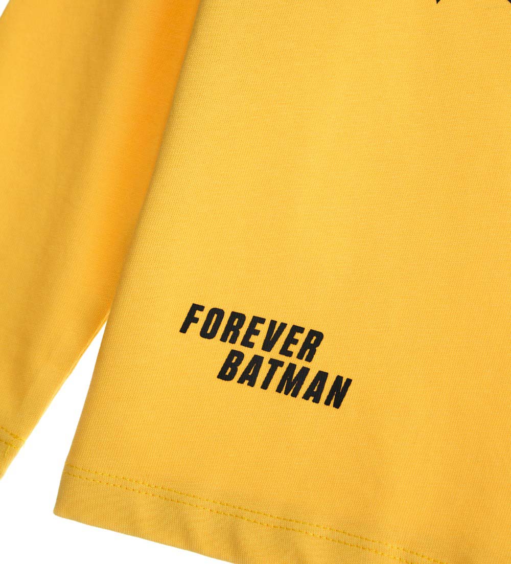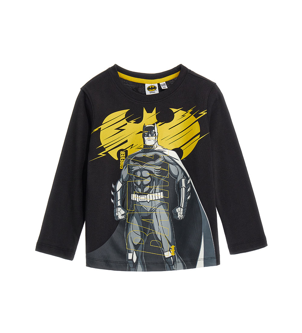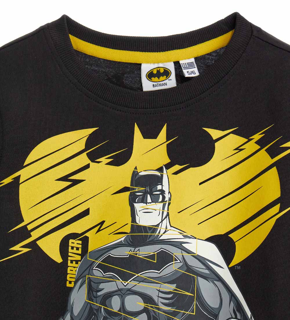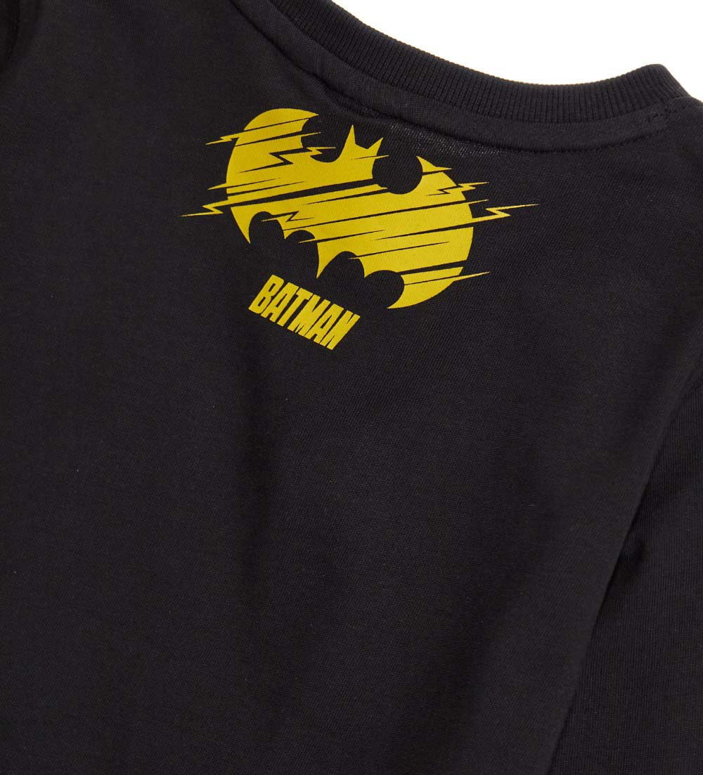T-shirt ras du cou en coton à manches longues Batman avec revers, finitions côtelées et imprimés Batman.
