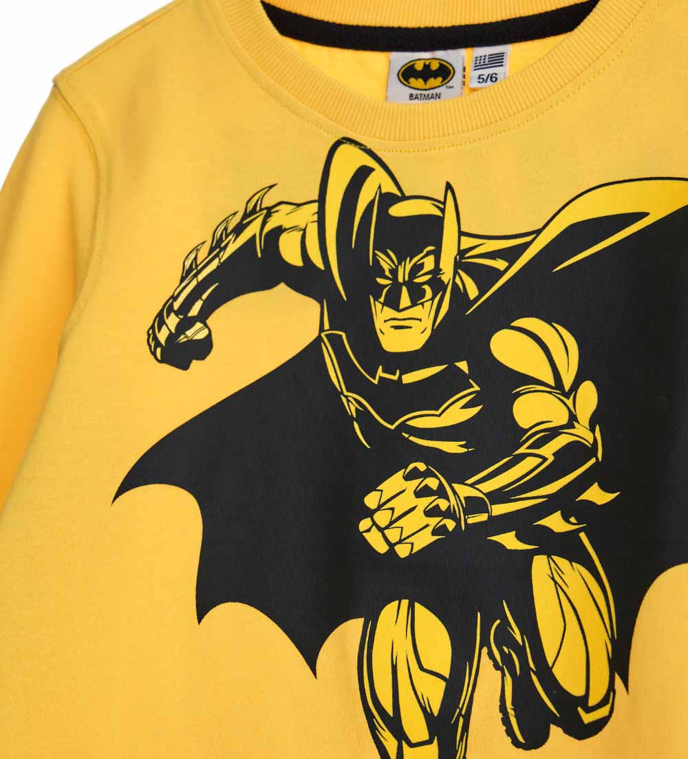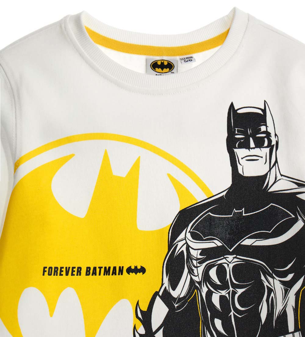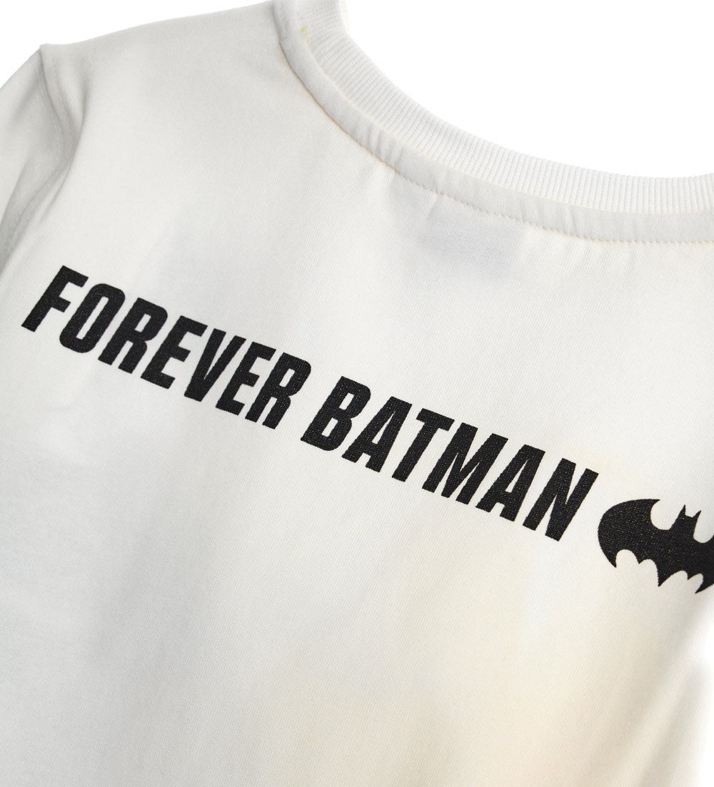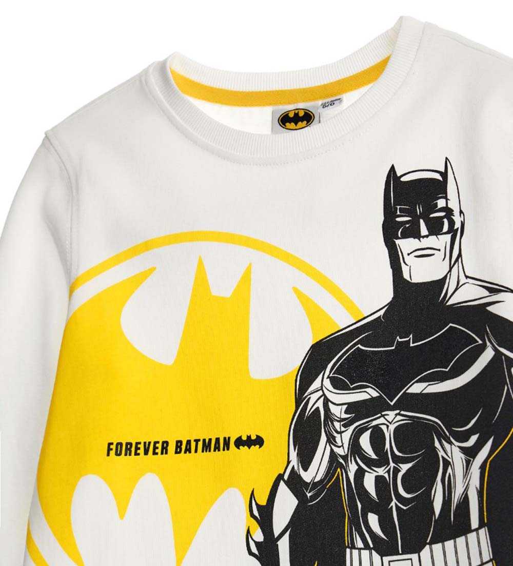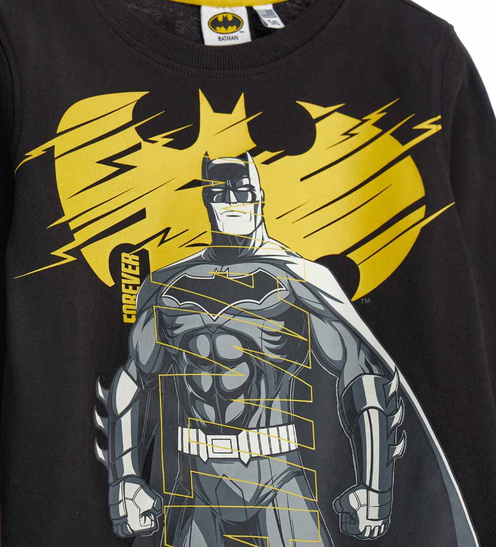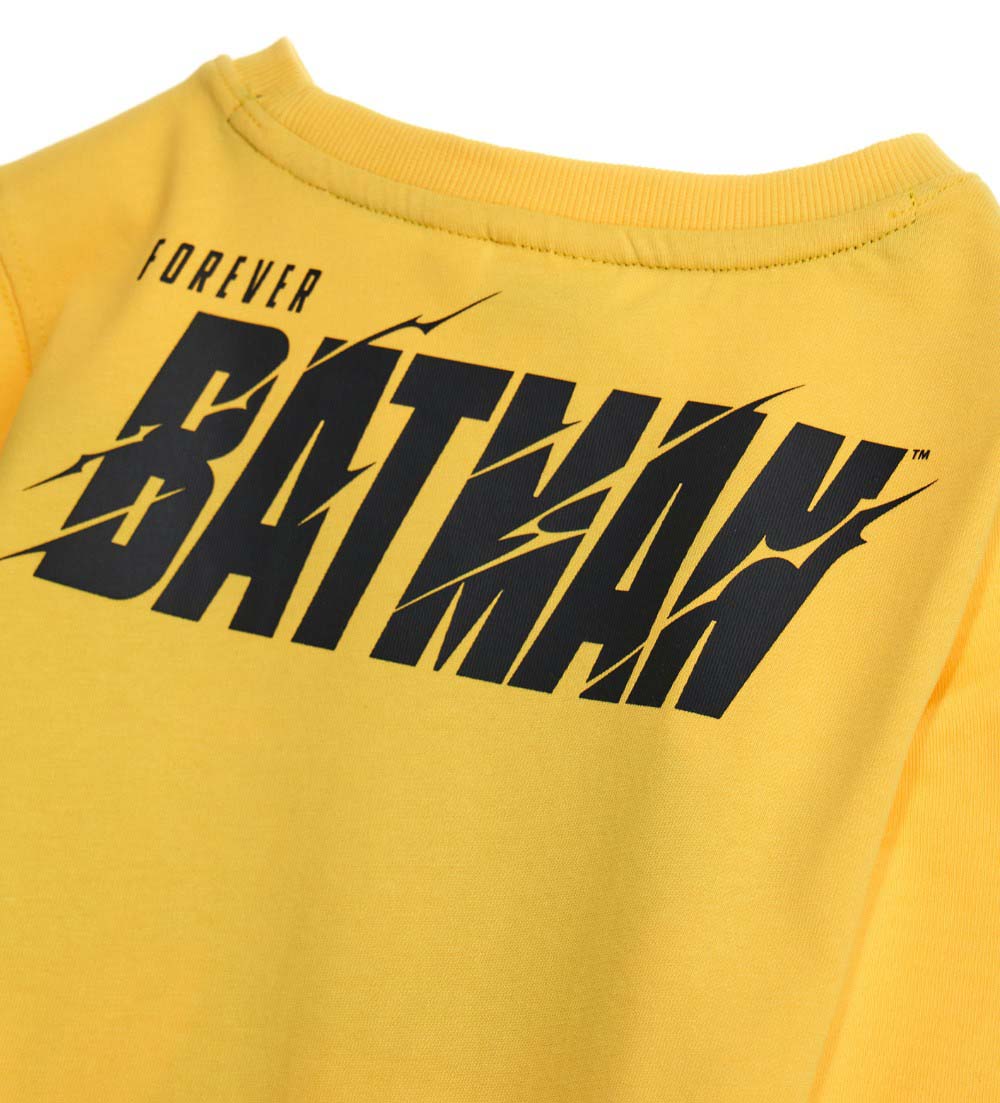 T-shirt ras du cou en coton à manches longues Batman avec revers, finitions côtelées et imprimés Batman.