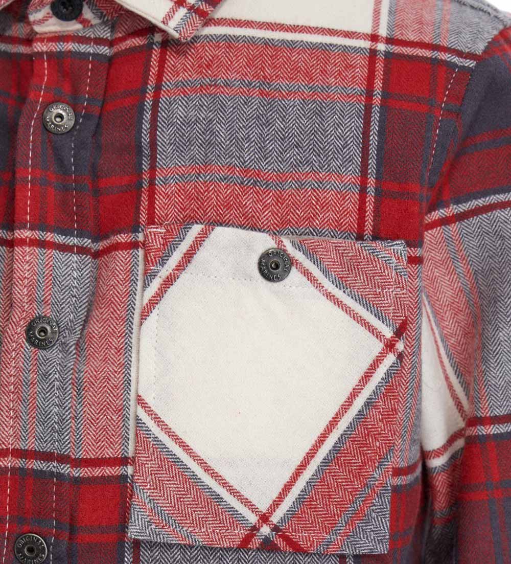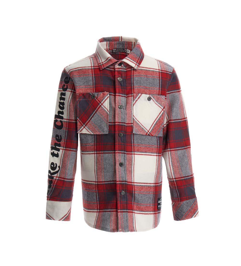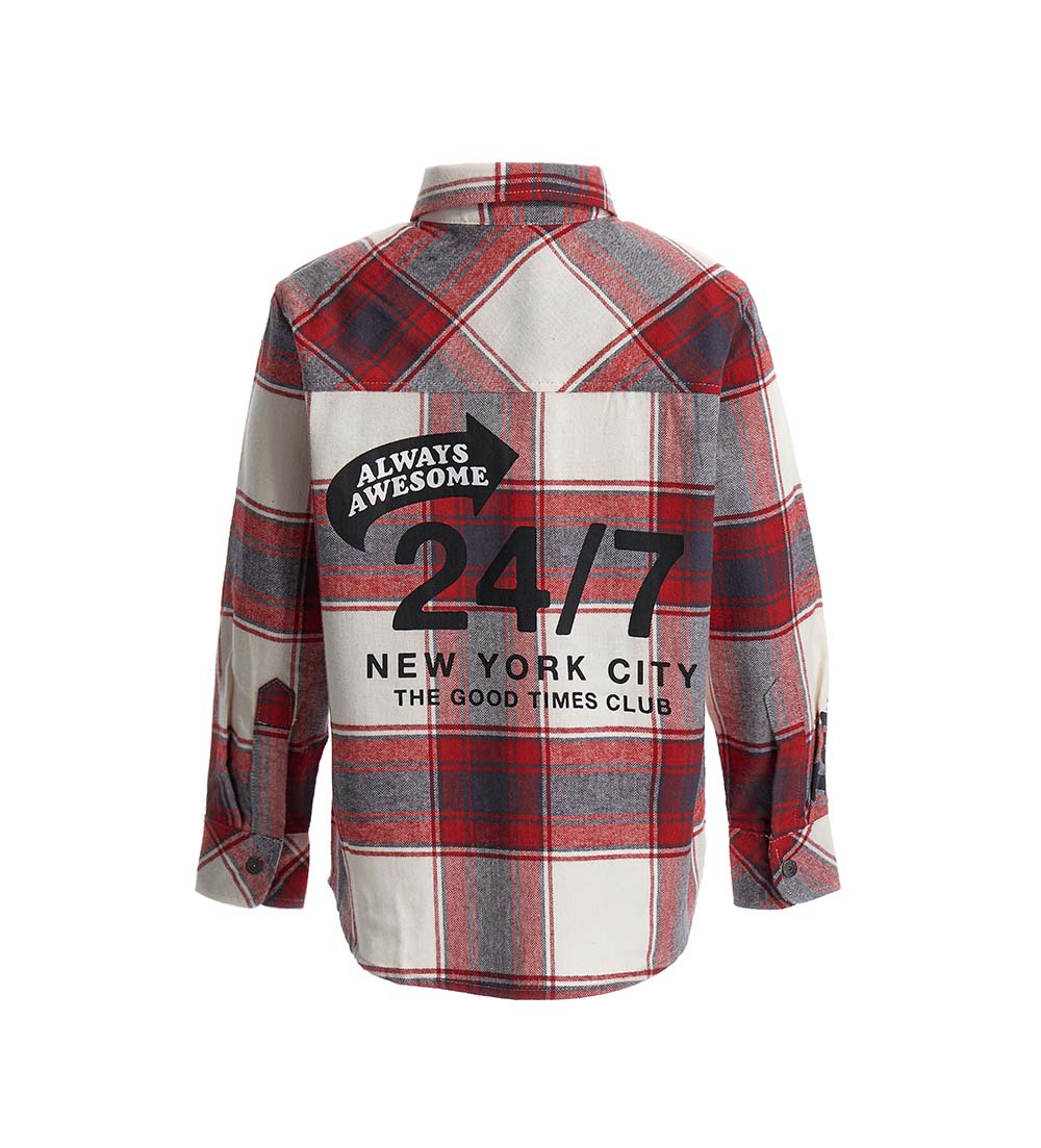 Chemise à manches longues en coton teint en fil avec boutons pression, poches devant, imprimés et étiquette brodée.