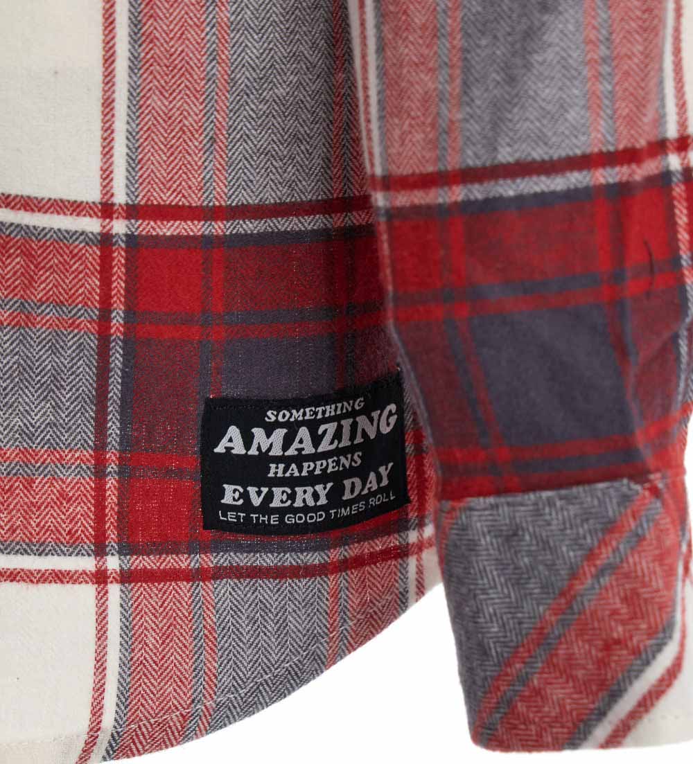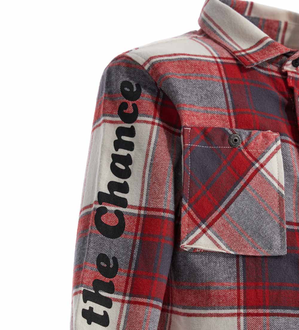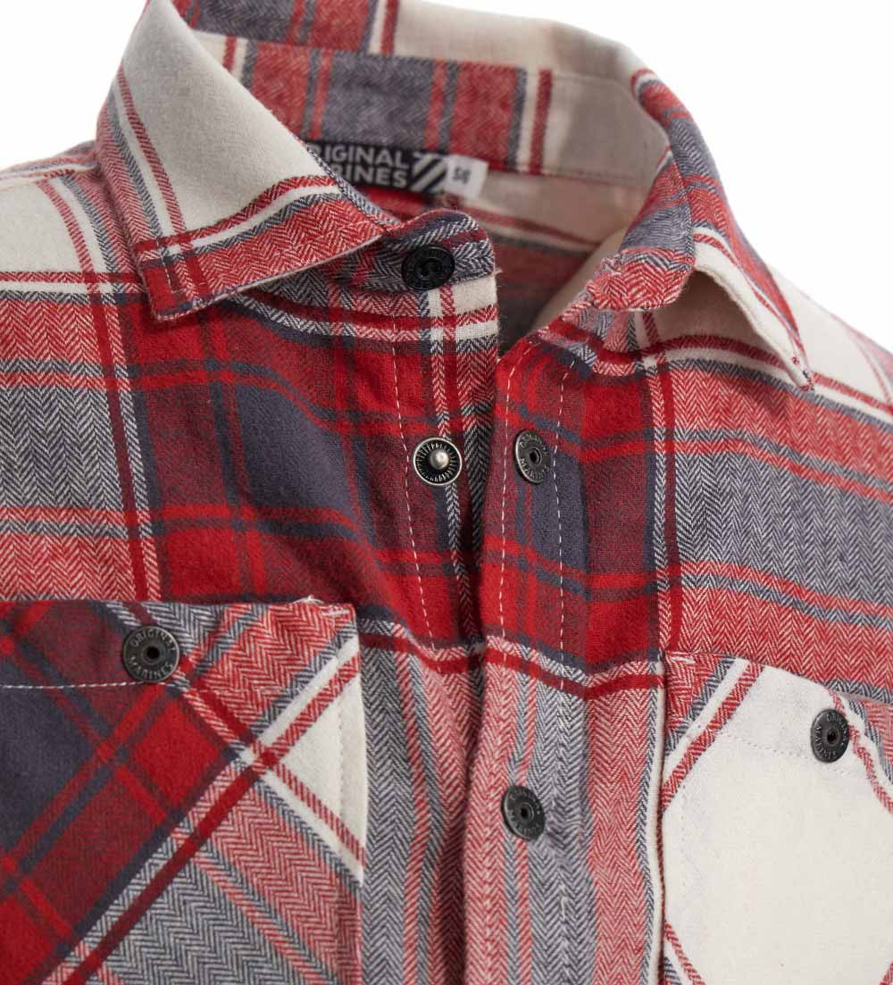Chemise à manches longues en coton teint en fil avec boutons pression, poches devant, imprimés et étiquette brodée.