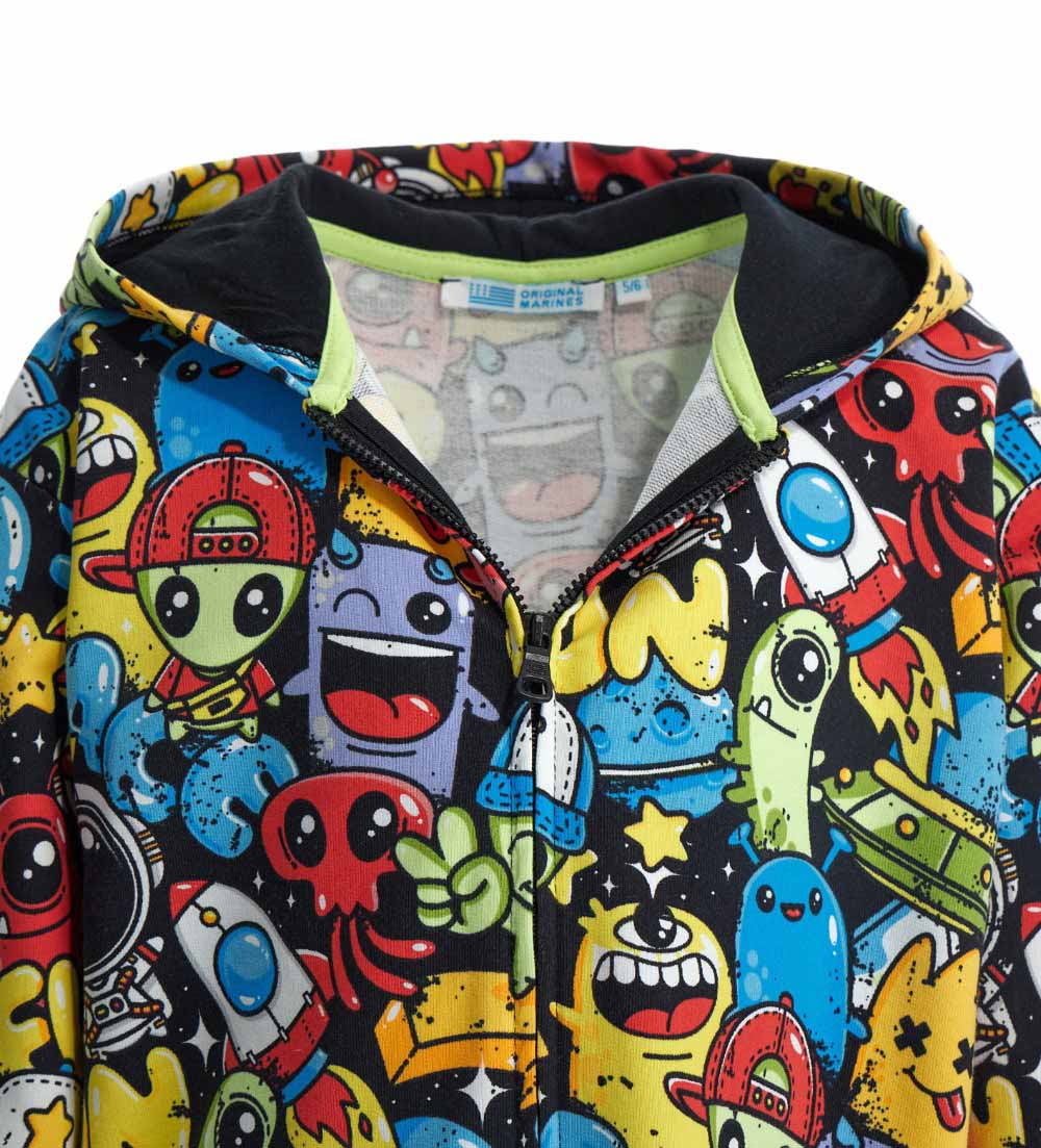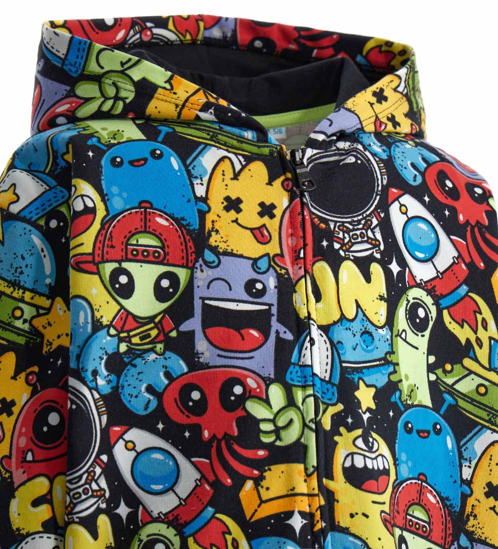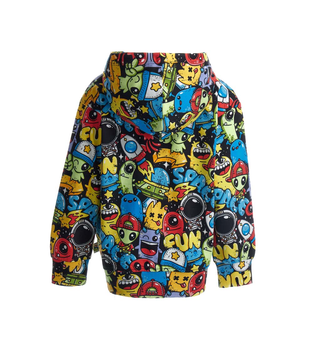 Sweat-shirt en coton avec capuche, ouverture zippée, finitions côtelées et imprimé allover.