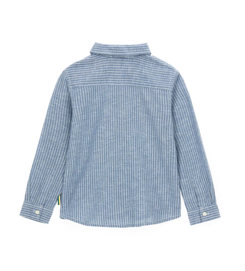 Chemise à manches longues en mélange de coton et de lin avec boutonnage sur le devant, imprimé sur la poche et étiquette brodée.