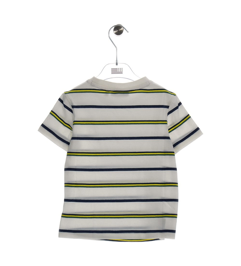 T-shirt en coton teint en fil avec col ras du cou, manches courtes, bordures côtelées et étiquette brodée.