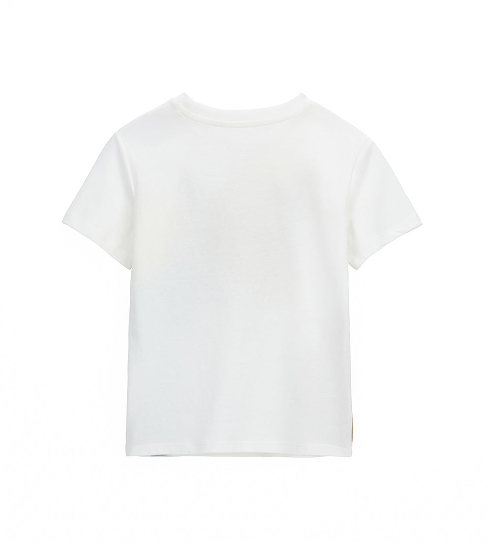 T-shirt en coton à col rond, manches courtes, maxi imprimé sur le devant et étiquette brodée sur le côté.