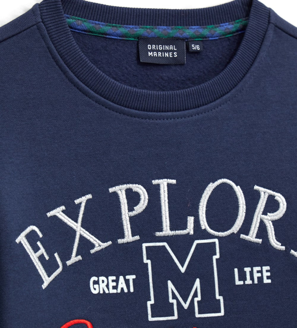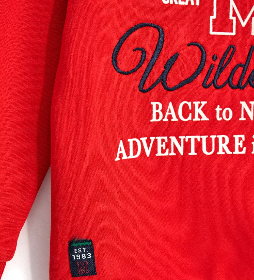 Sweat-shirt chaud à manches longues en coton mélangé à col rond avec finitions côtelées, broderie, imprimé et étiquette brodée.