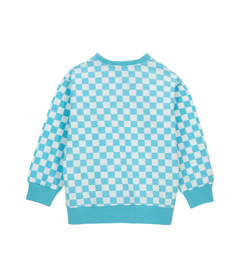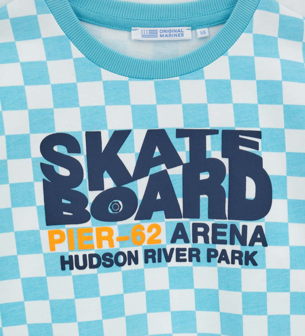 Sweat-shirt en coton à col ras du cou et manches longues avec bordures côtelées, imprimé à carreaux sur toute la surface et lettrage imprimé sur le devant.