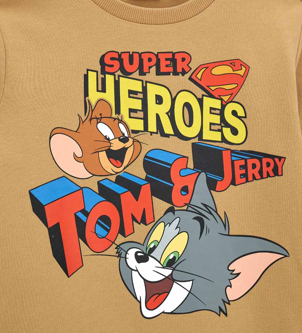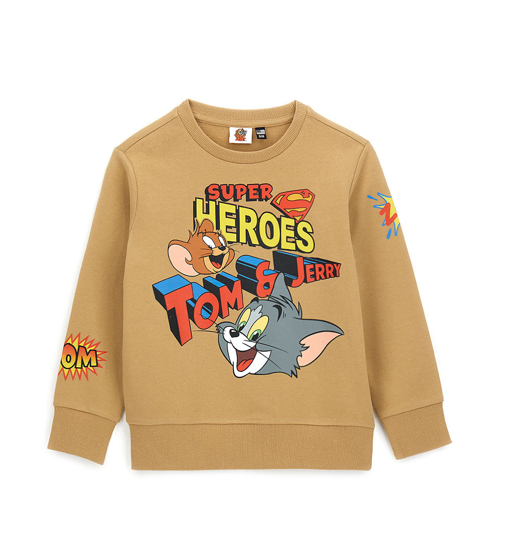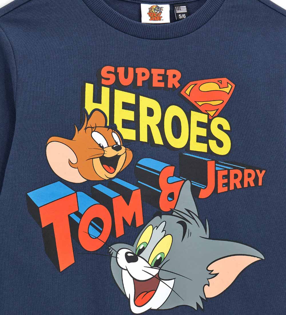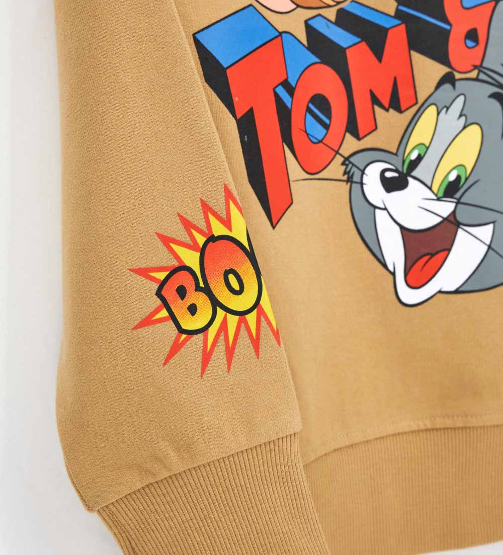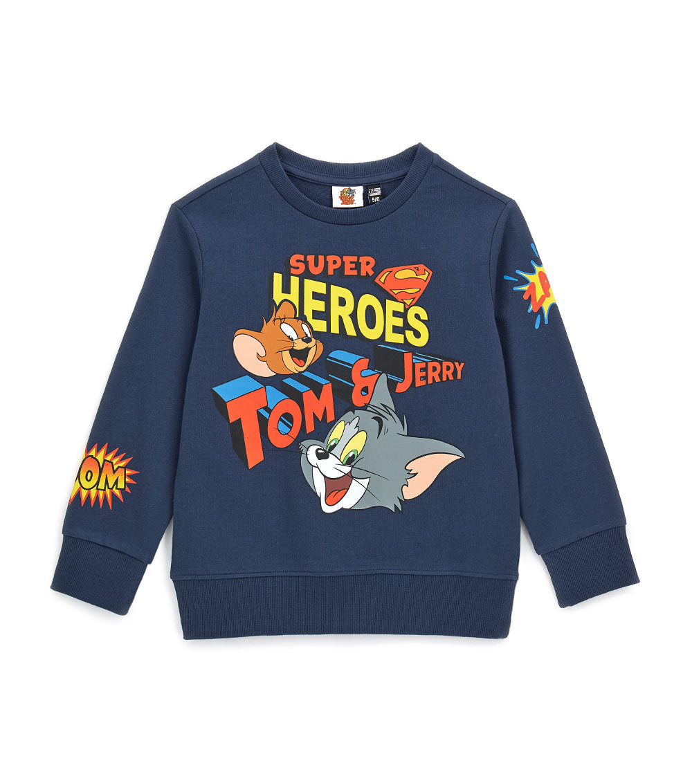 Sweat-shirt ras du cou en coton Tom & Jerry avec bordures côtelées et imprimés sur le devant, le dos et les manches.