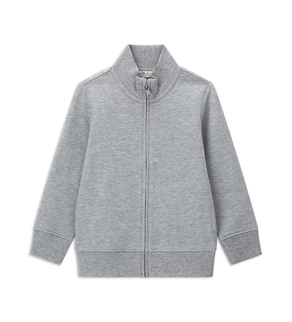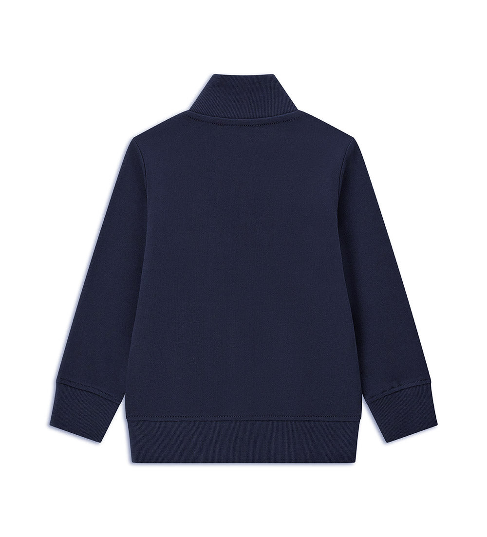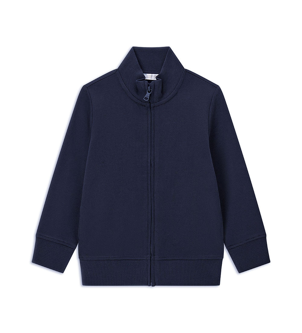 Veste chaude en polaire de coton avec ouverture zippée sur le devant, col et bas côtelés pour une ambiance sportive et pratique.