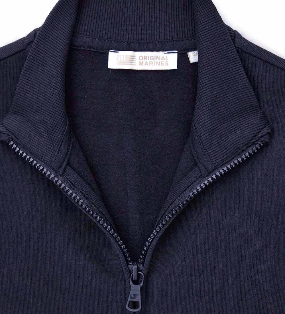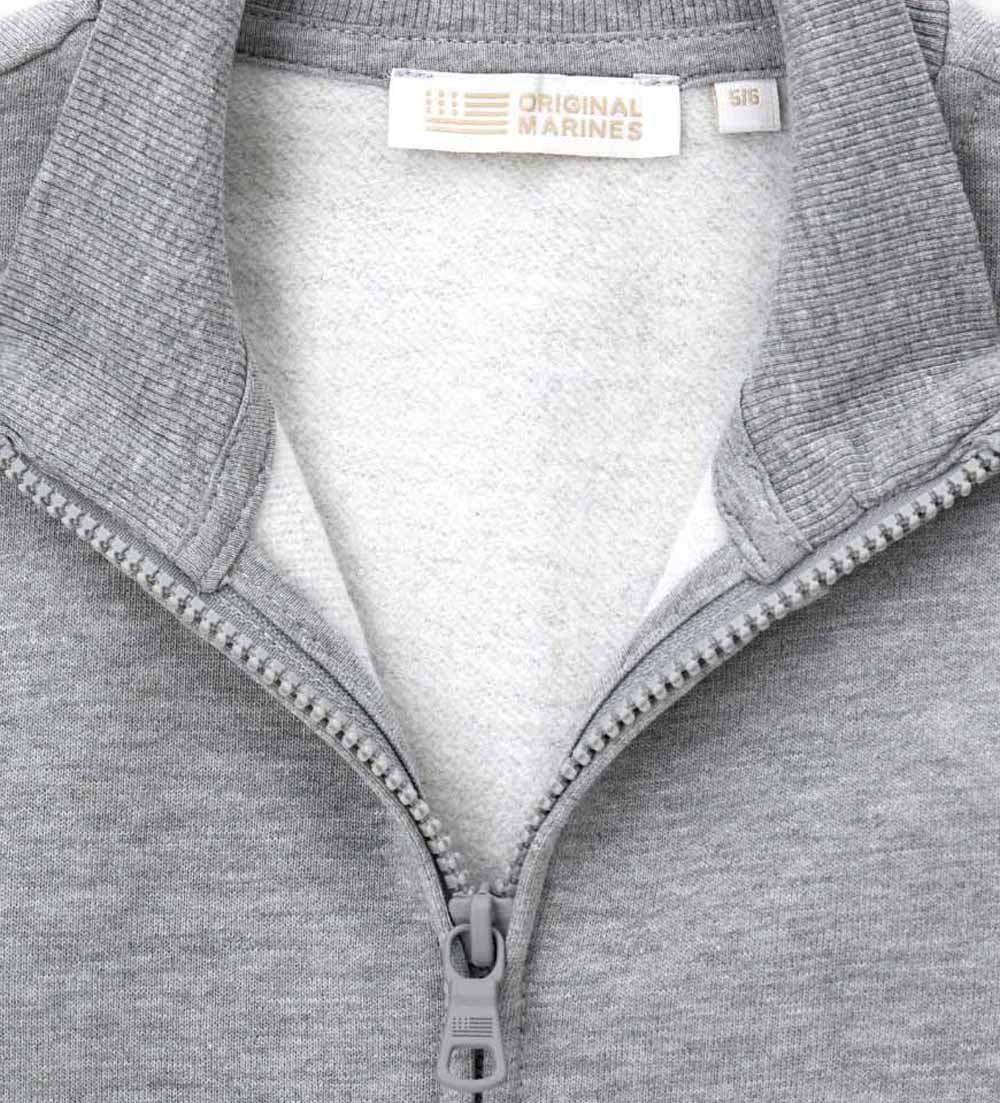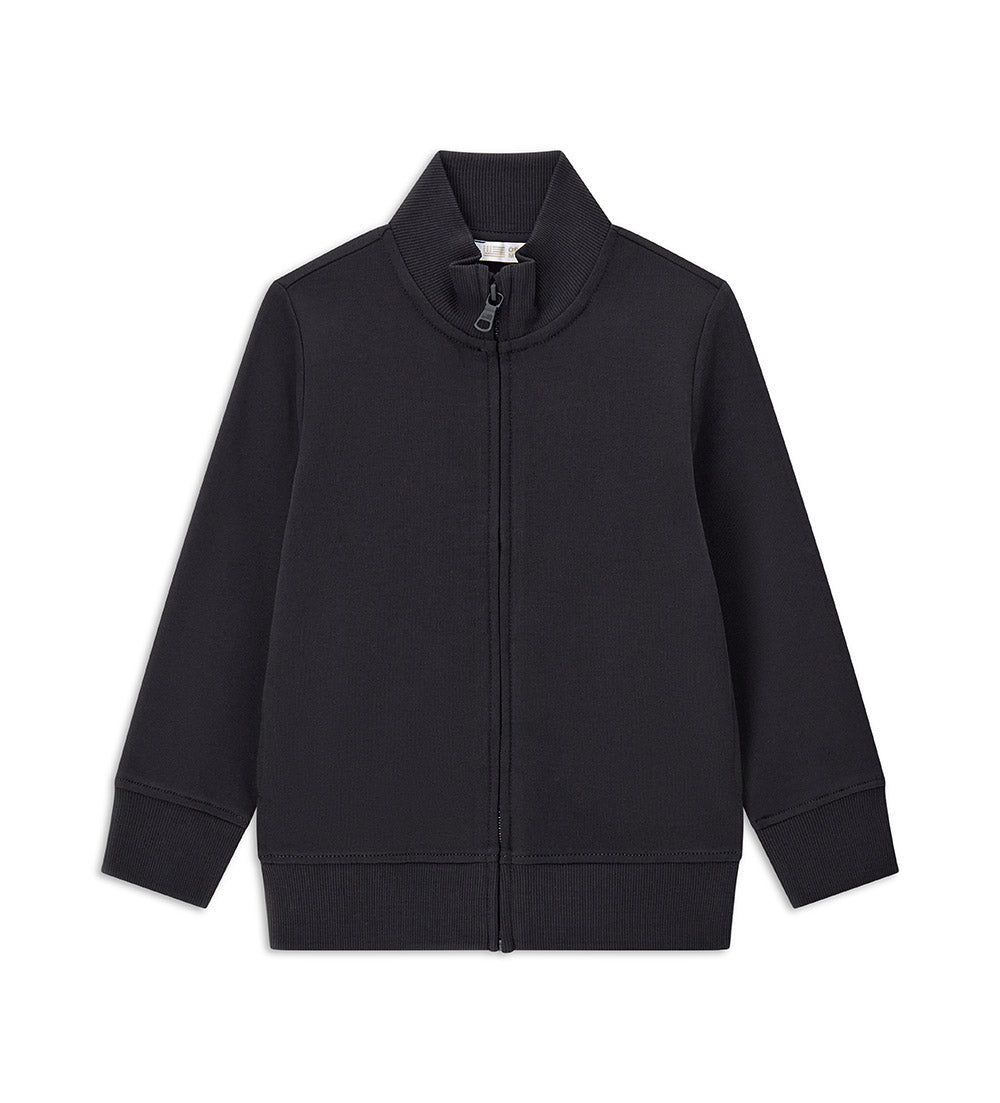 Veste chaude en polaire de coton avec ouverture zippée sur le devant, col et bas côtelés pour une ambiance sportive et pratique.