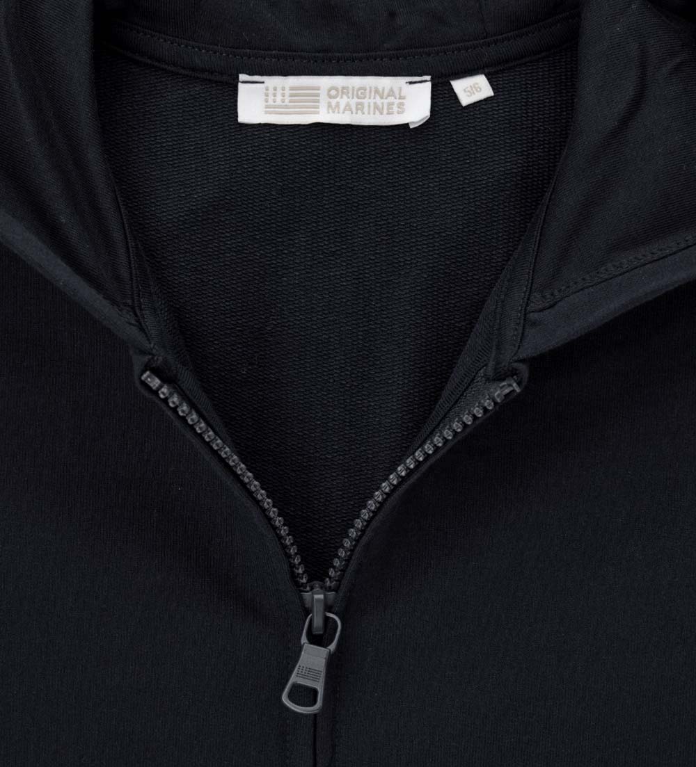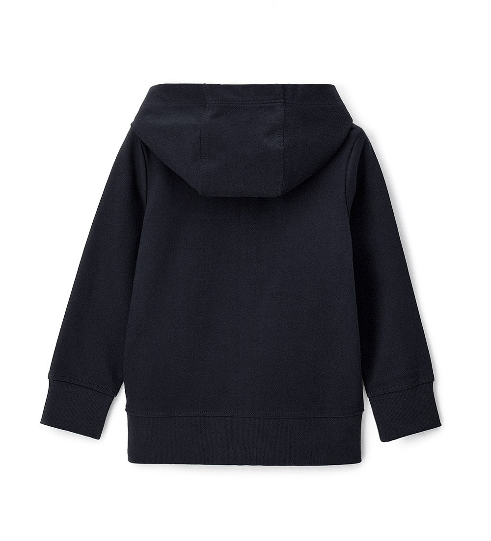 Veste chaude en polaire de coton avec capuche, idéale pour les premiers froids. Ouverture zippée sur le devant et bas côtelé pour plus de confort.