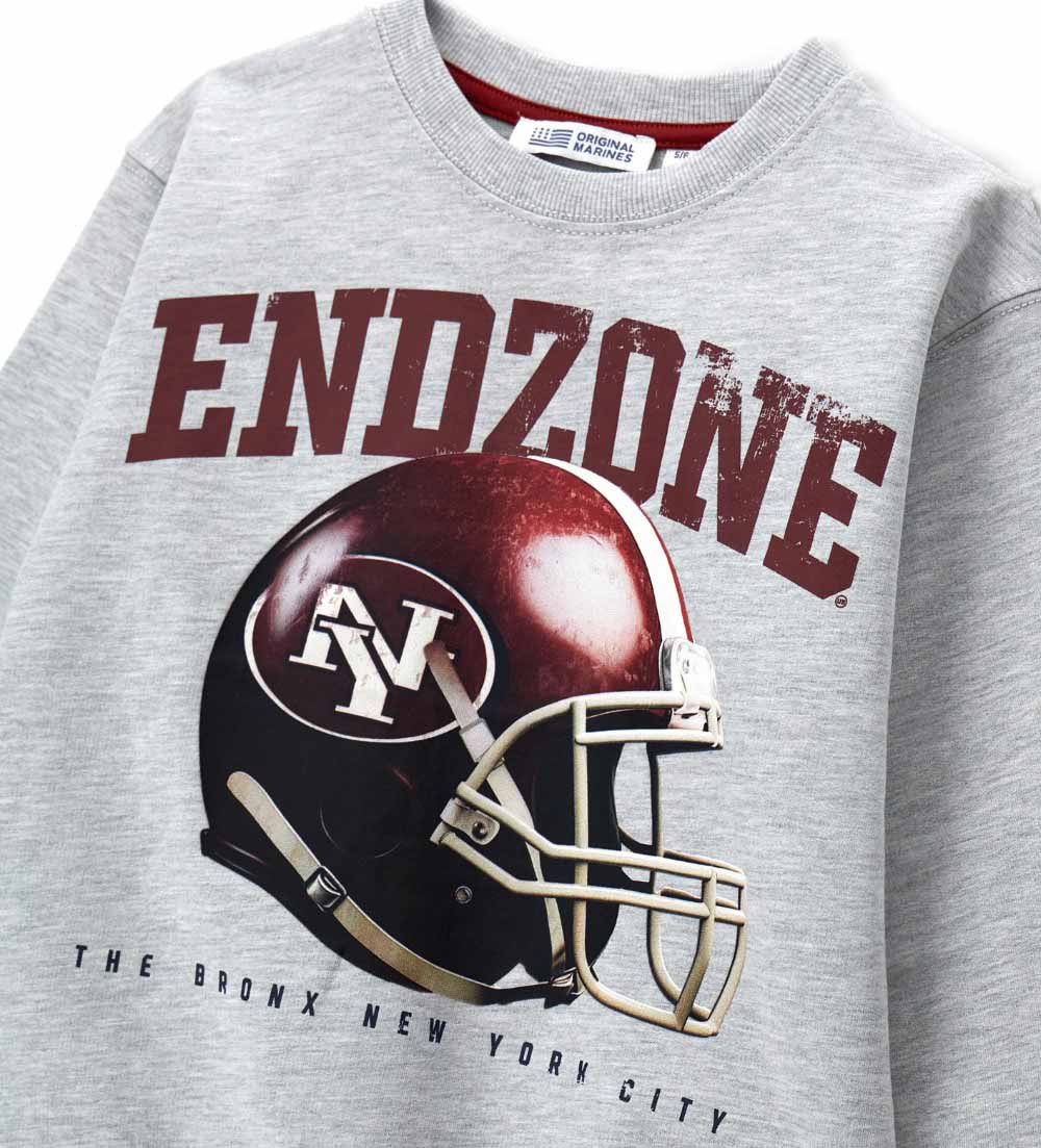 Sweat-shirt en coton à manches longues avec col rond, finitions côtelées, imprimé sur le devant et étiquette brodée sur la manche.