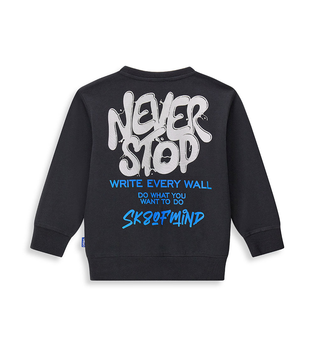 Sweat-shirt en coton à manches longues avec bords côtelés et décoré d’imprimés sur le devant et le dos.