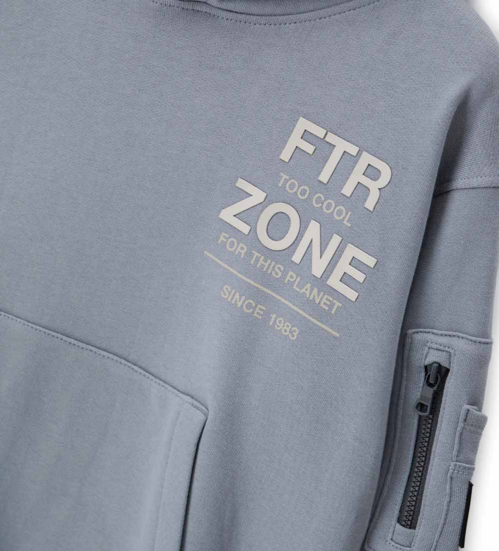 Sweat-shirt oversize en coton chaud au style urbain. Manches longues, capuche doublée en coton, poche kangourou et poche plaquée avec fermeture éclair contrastante. Finitions côtelées, imprimés et étiquette brodée pour un style unique.