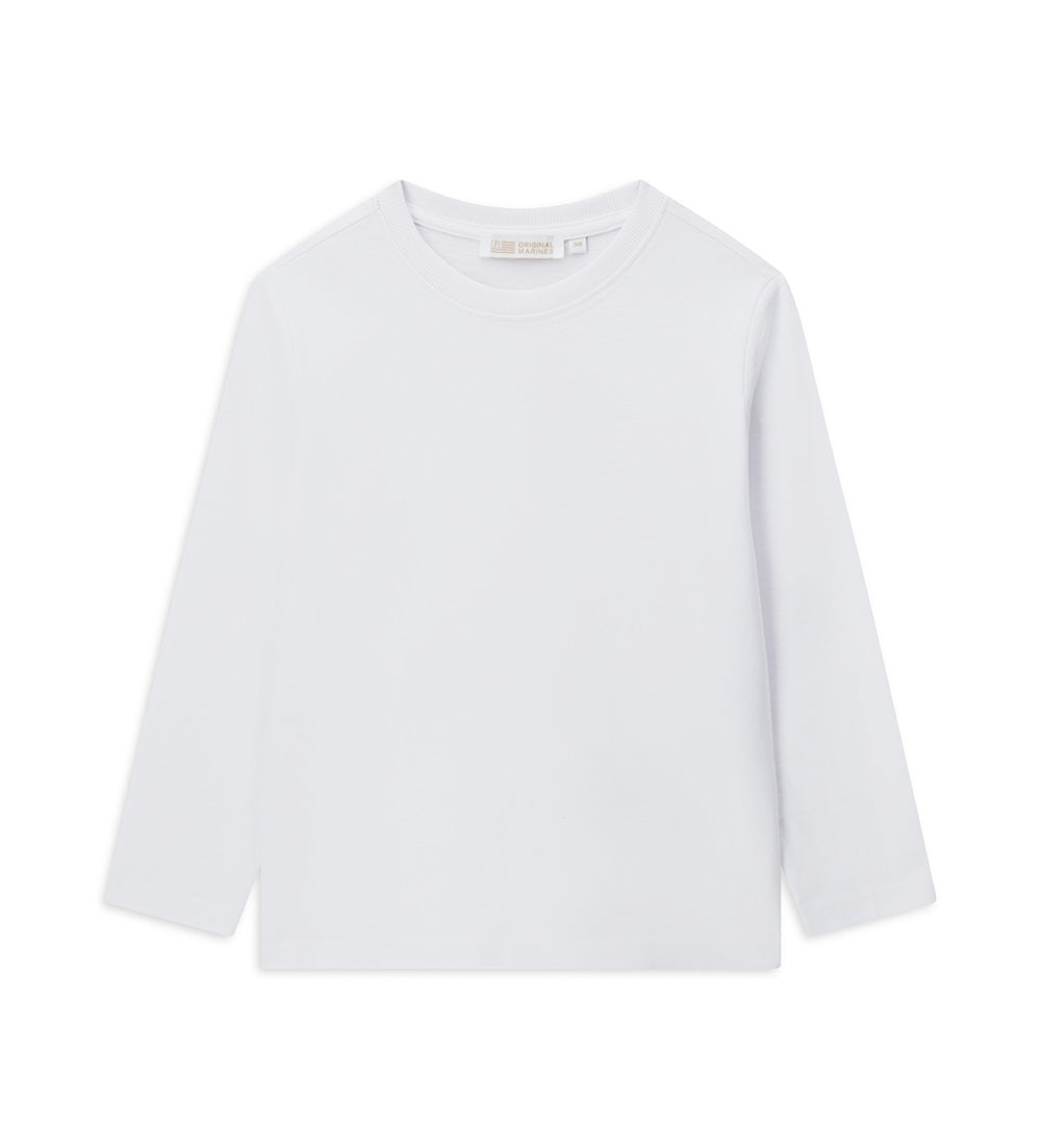 T-shirt à manches longues en jersey de coton doux, idéal pour un confort quotidien. Son col rond côtelé apporte une touche de style et de praticité à votre look.
