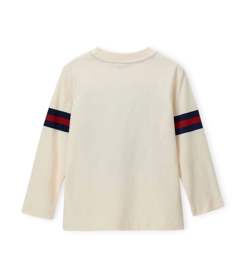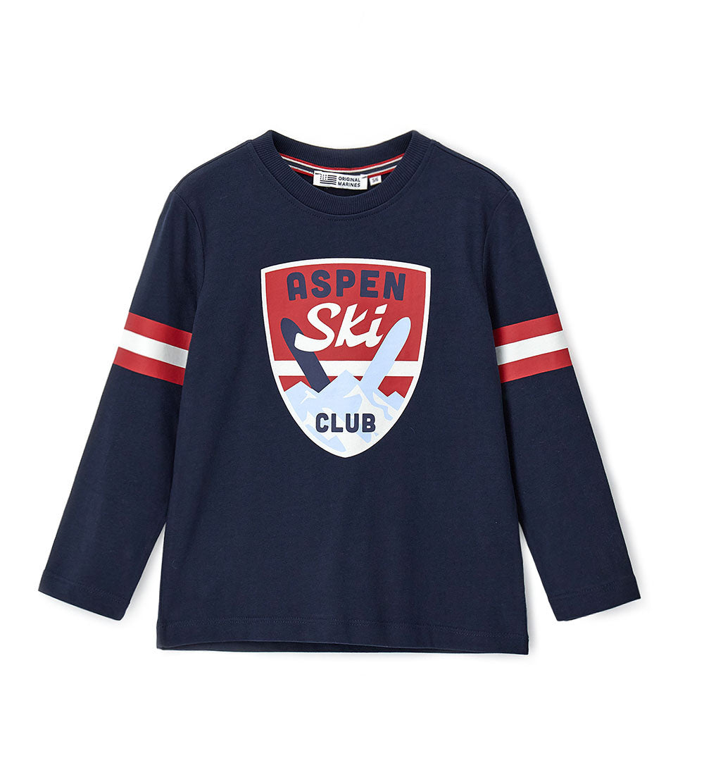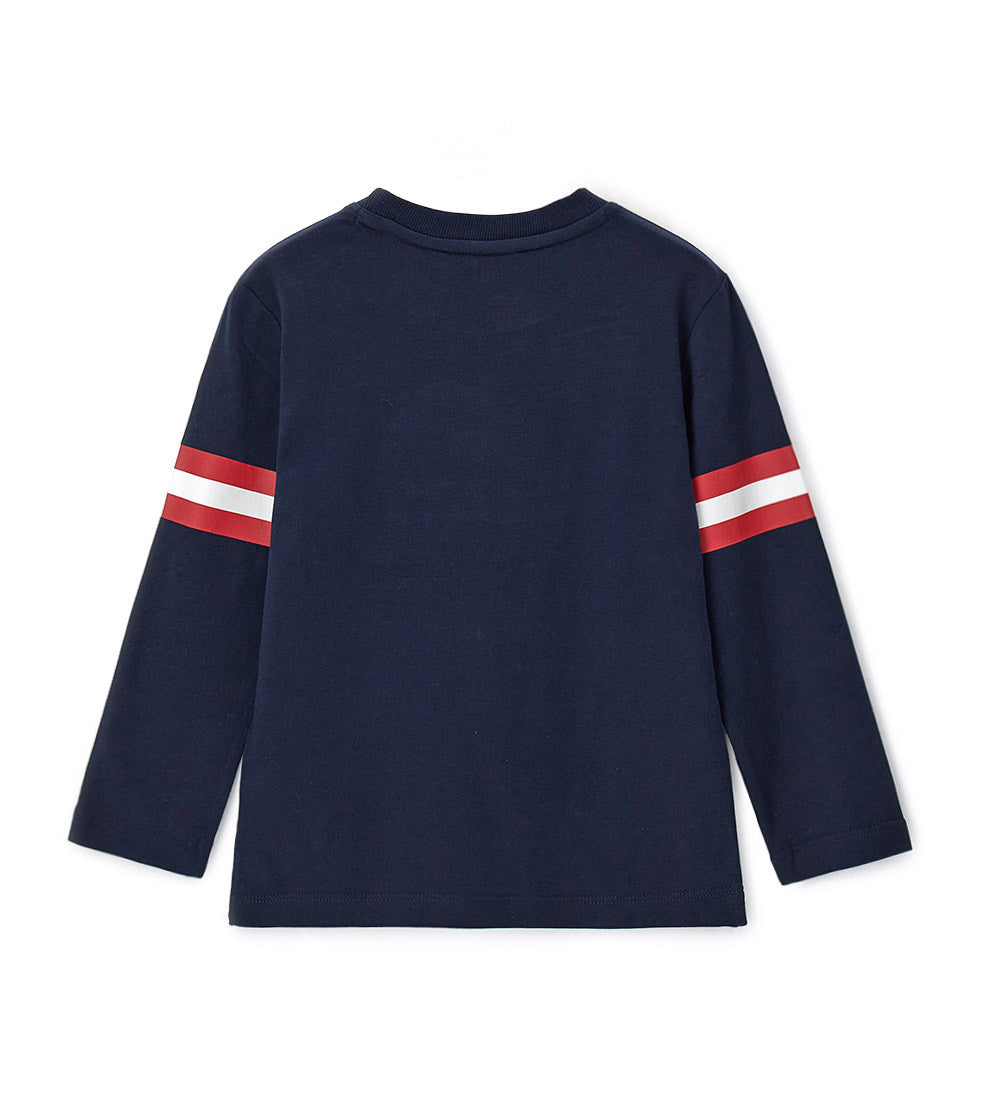 T-shirt en coton doux à manches longues, col rond côtelé et orné d’imprimés, parfait pour un look confortable et tendance.