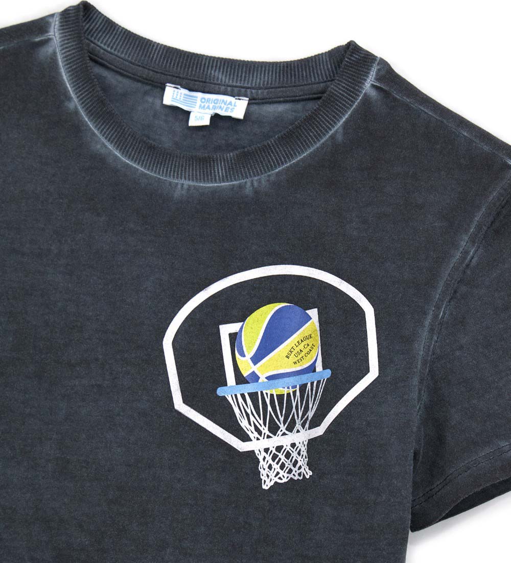 T-shirt en coton teint en pièce avec col ras du cou, manches courtes et imprimé sur le devant.