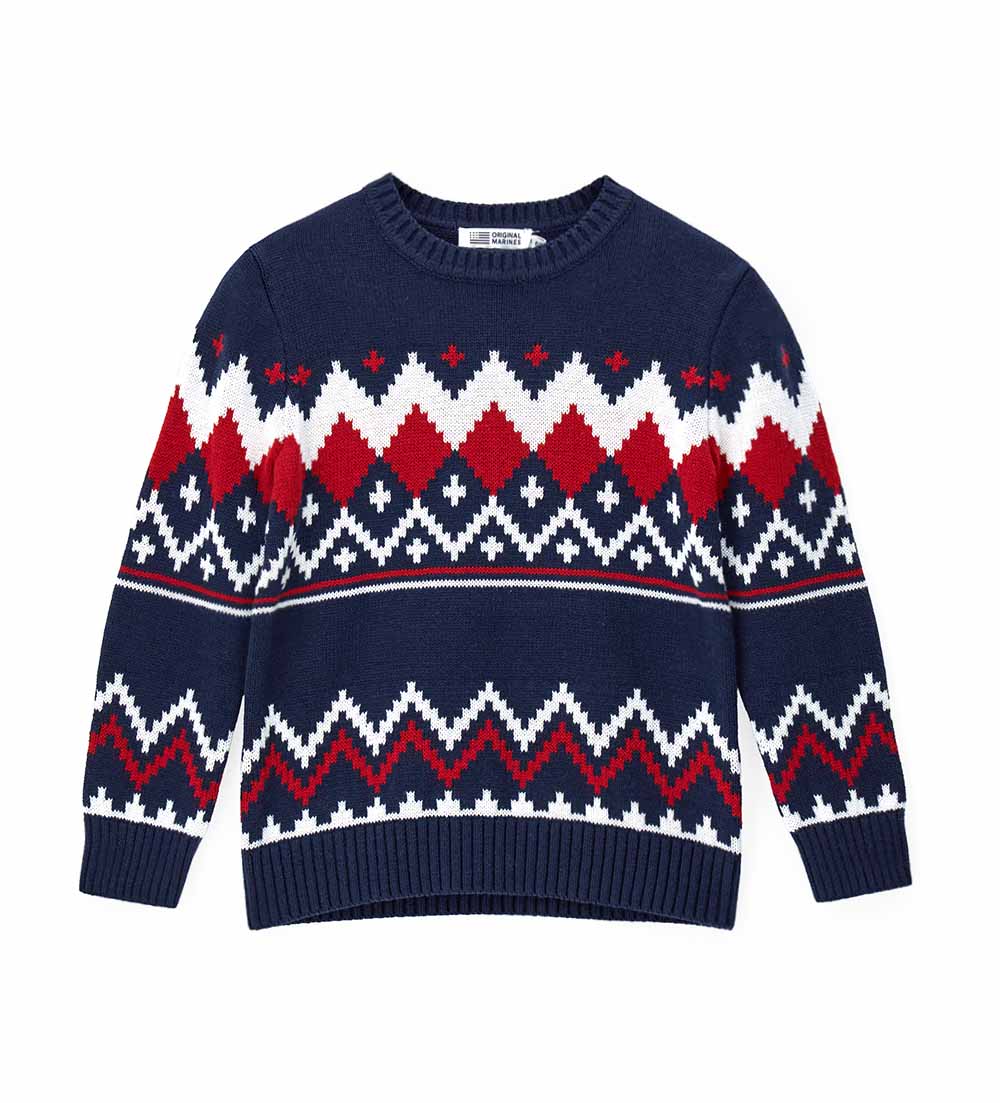 Pull en maille de laine mélangée à motif losanges, manches longues, col rond et finitions côtelées pour un look chaud, polyvalent et intemporel.