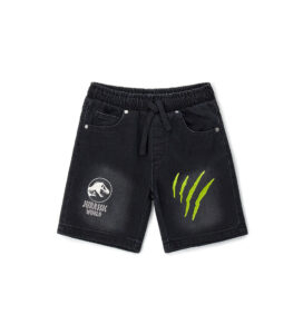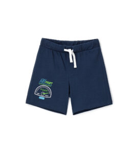 Bermuda en coton épais avec taille élastique, poches avant, cordon de serrage réglable et imprimé sur le devant.