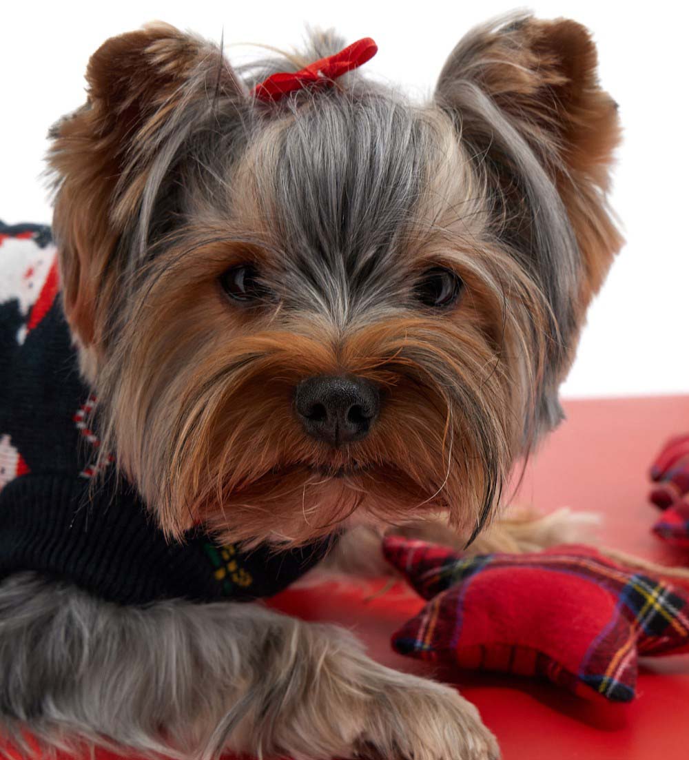 Pull en fils mélangés pour chiens avec finitions côtelées.