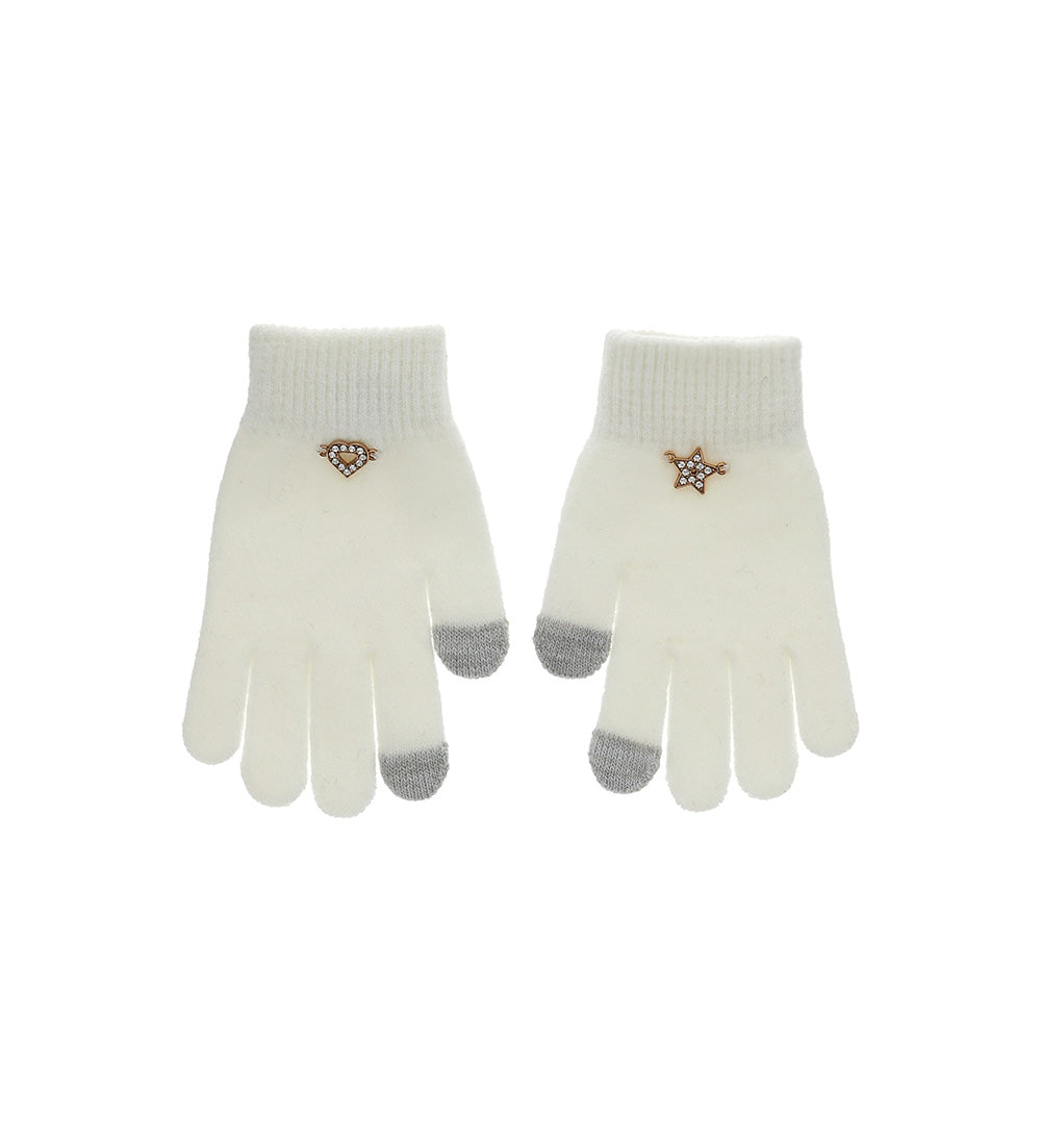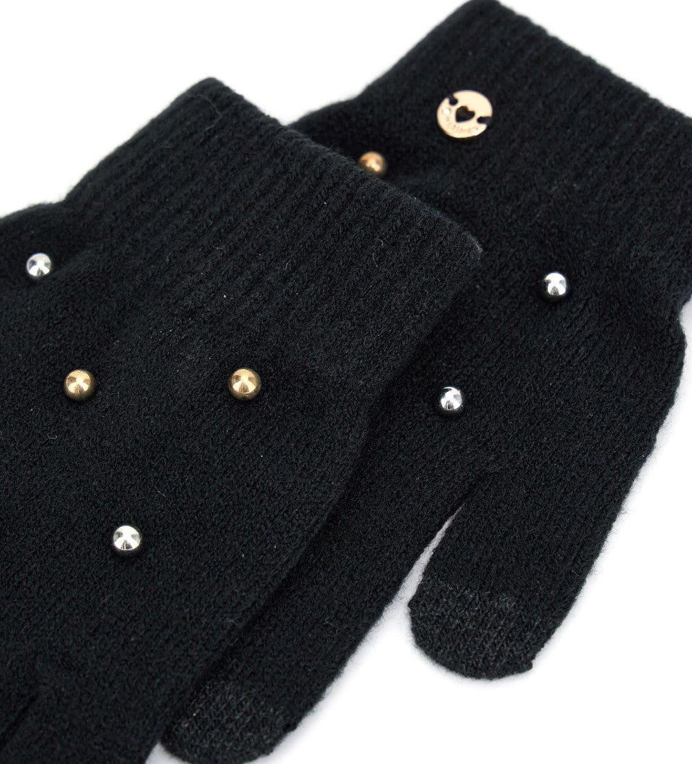 Gants tactiles tricotés avec applications.