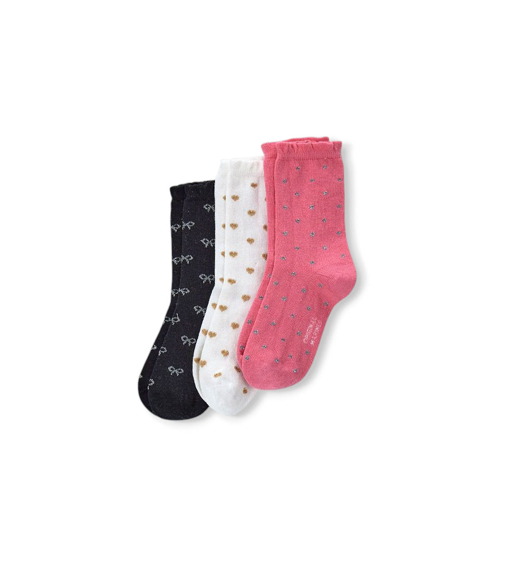Lot de trois paires de chaussettes à motifs jacquard et décorations. Douces et confortables, idéales au quotidien.