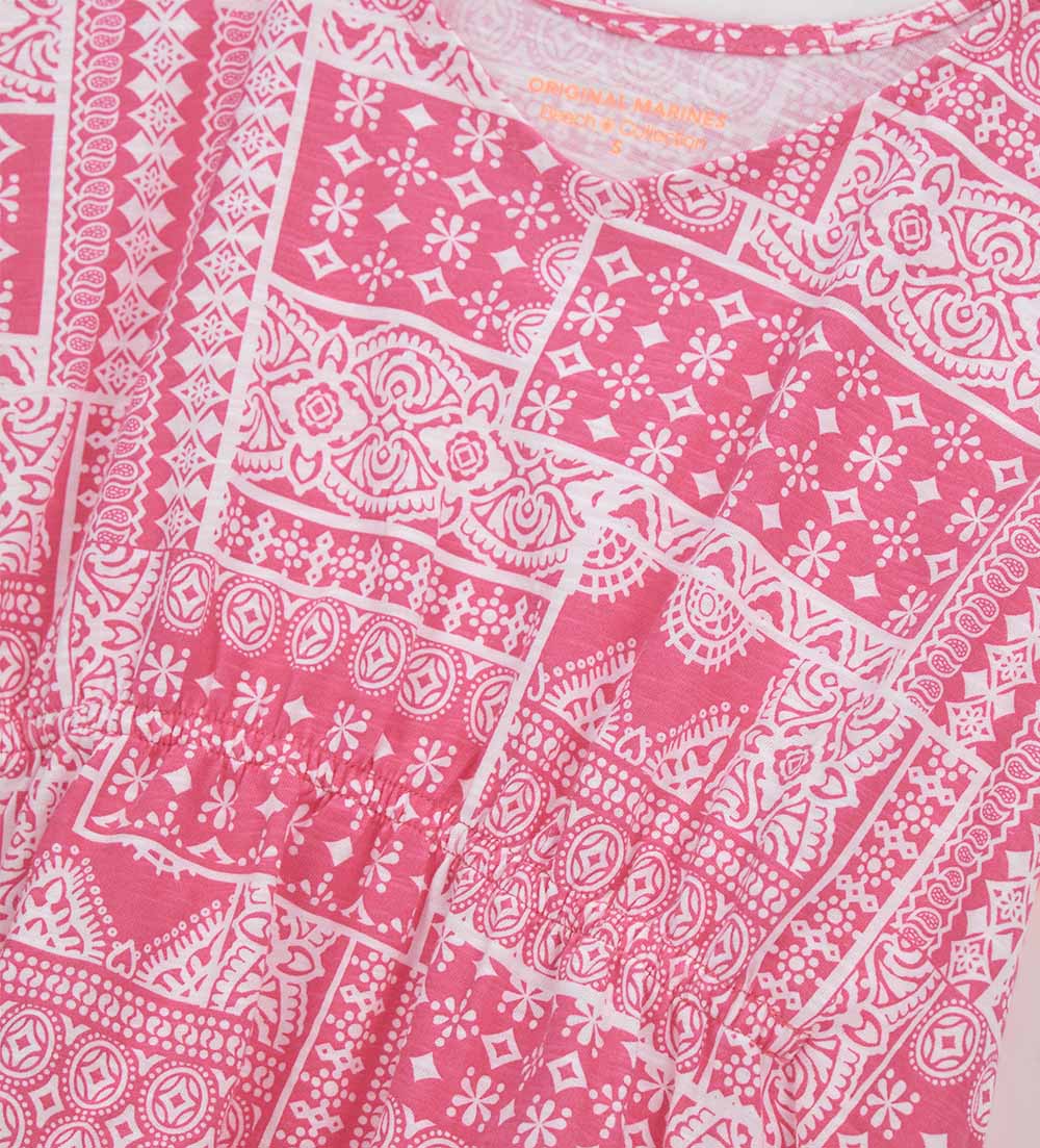 Veste de plage en coton avec imprimé bandana, taille élastiquée et bordure à franges colorées.