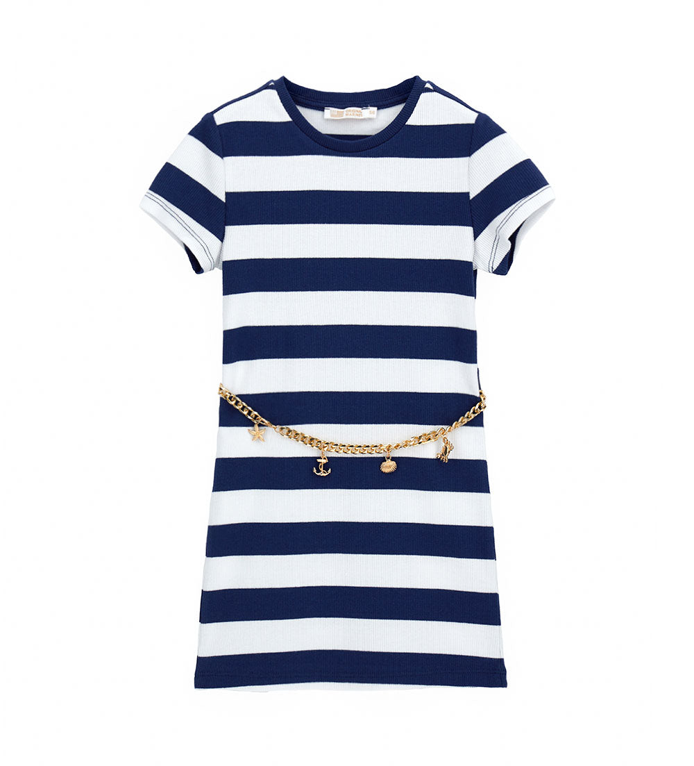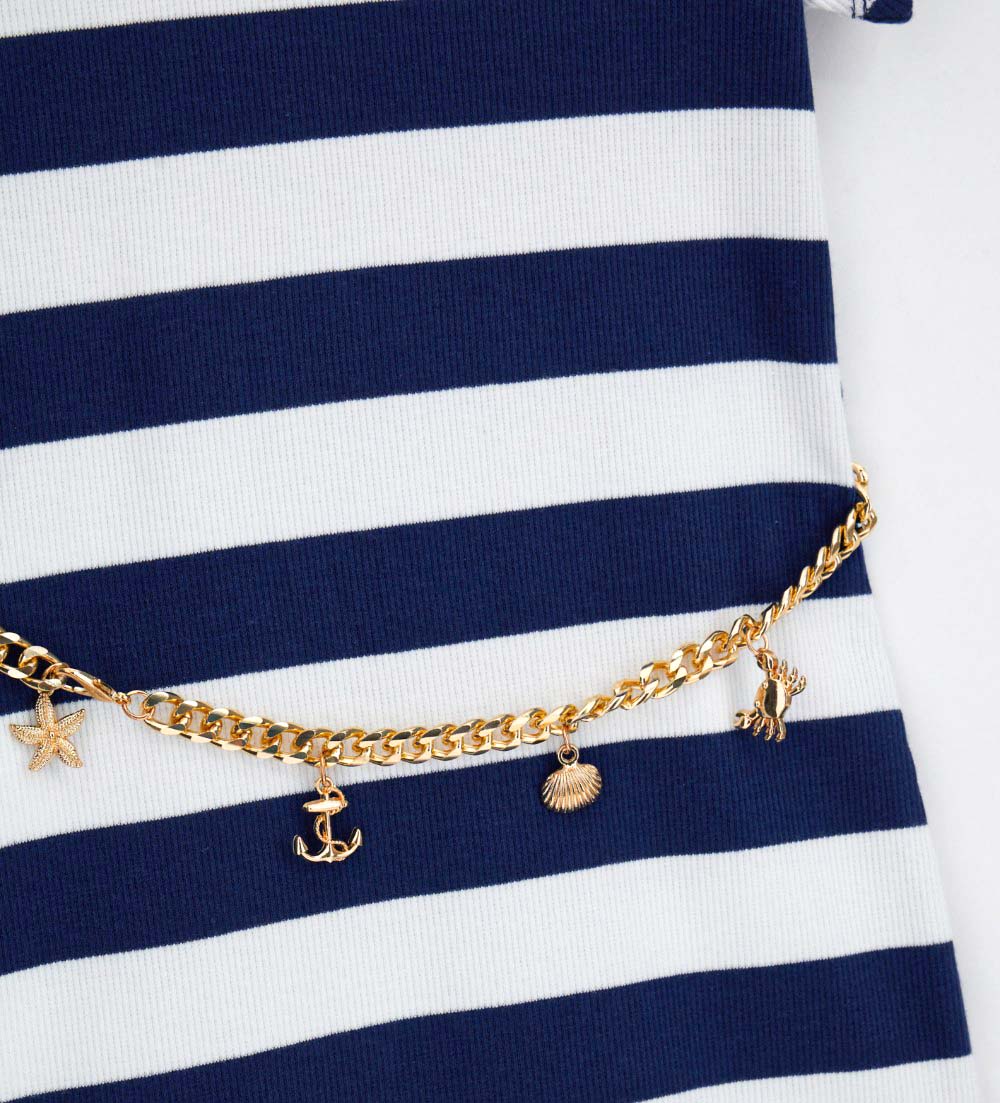 Robe côtelée teinte en fil avec ceinture métallique amovible.