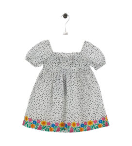 Combinaison en popeline de coton avec imprimé all-over et nœuds appliqués sur les bretelles.