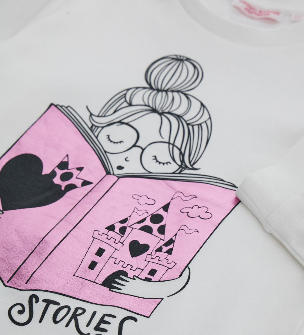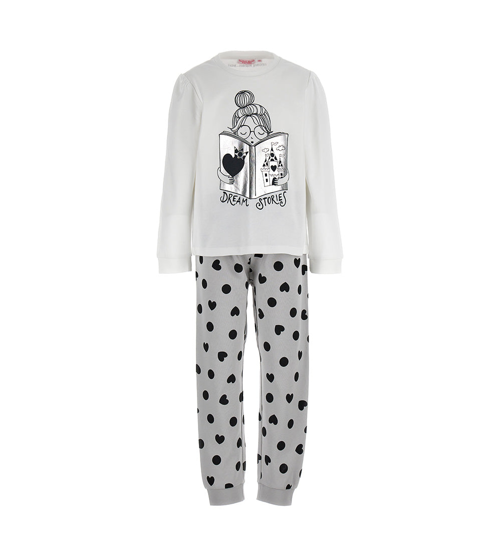 Pyjama chaud en coton aux finitions côtelées : t-shirt ras du cou et imprimé. Pantalon à imprimé all-over et flocons.