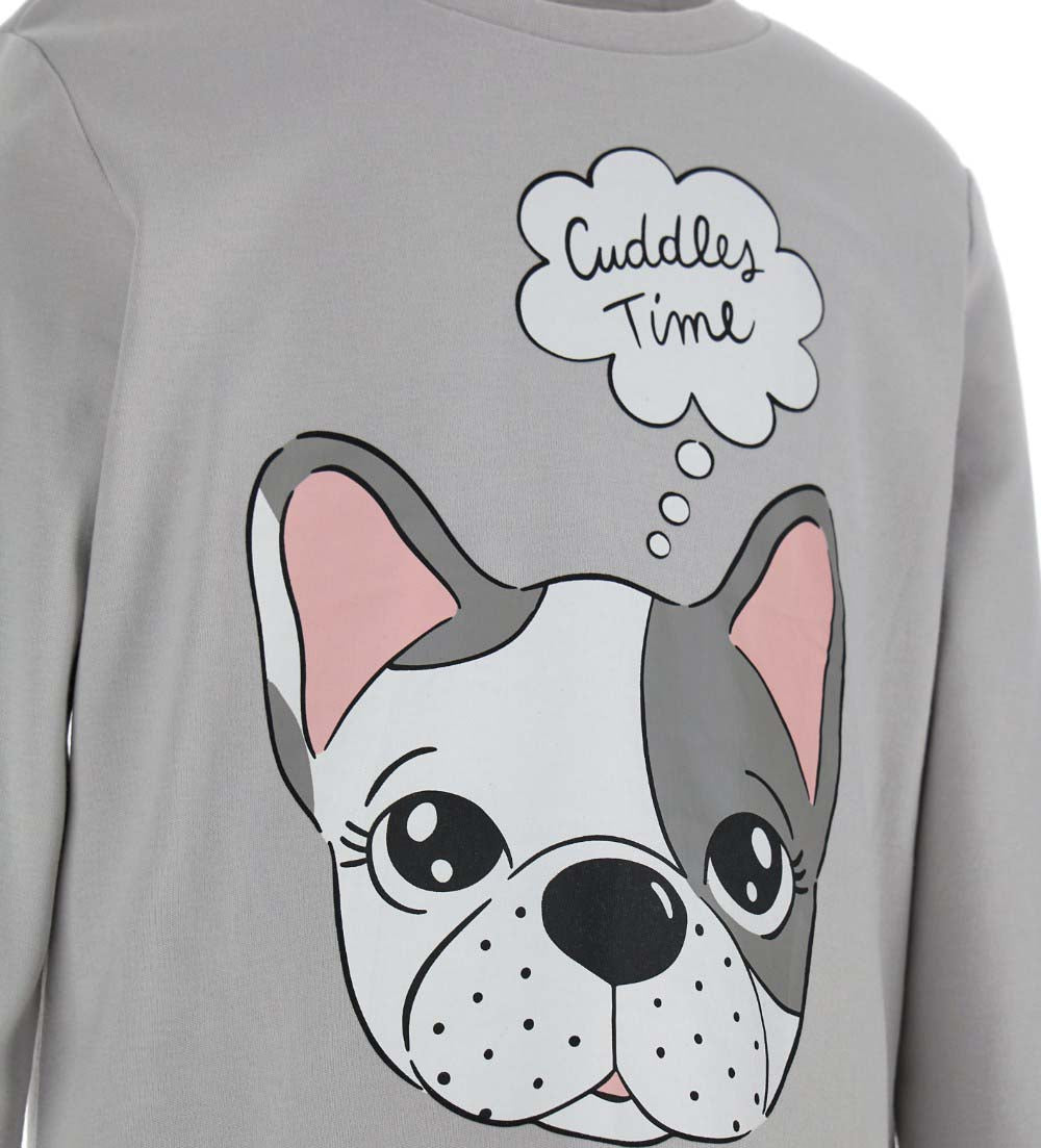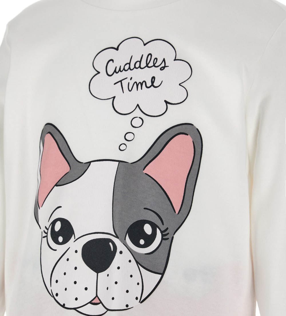 Pyjama chaud en coton : t-shirt ras du cou, imprimé et finitions côtelées. Pantalon avec imprimé all-over, finitions côtelées et flocons.
