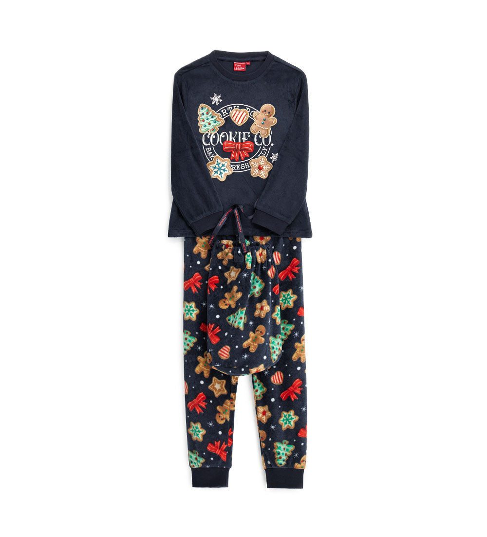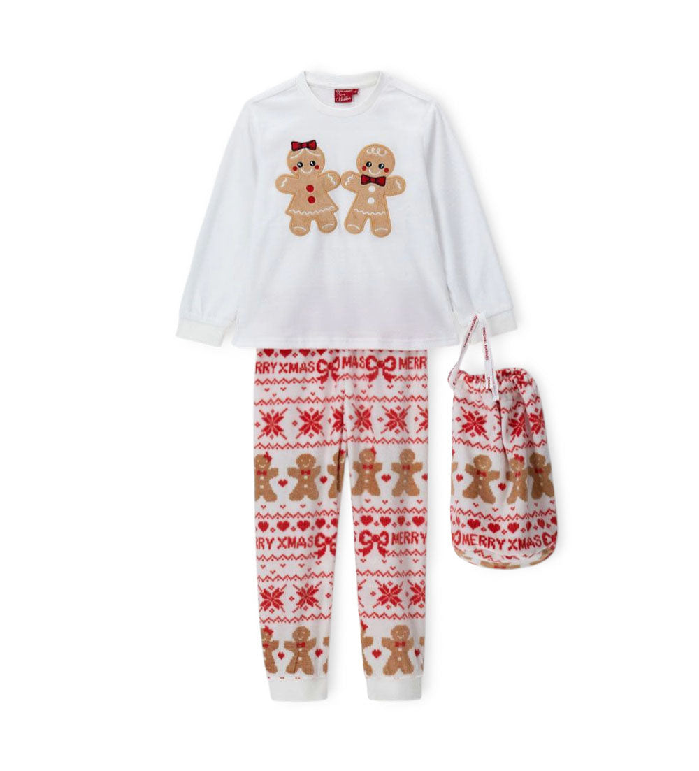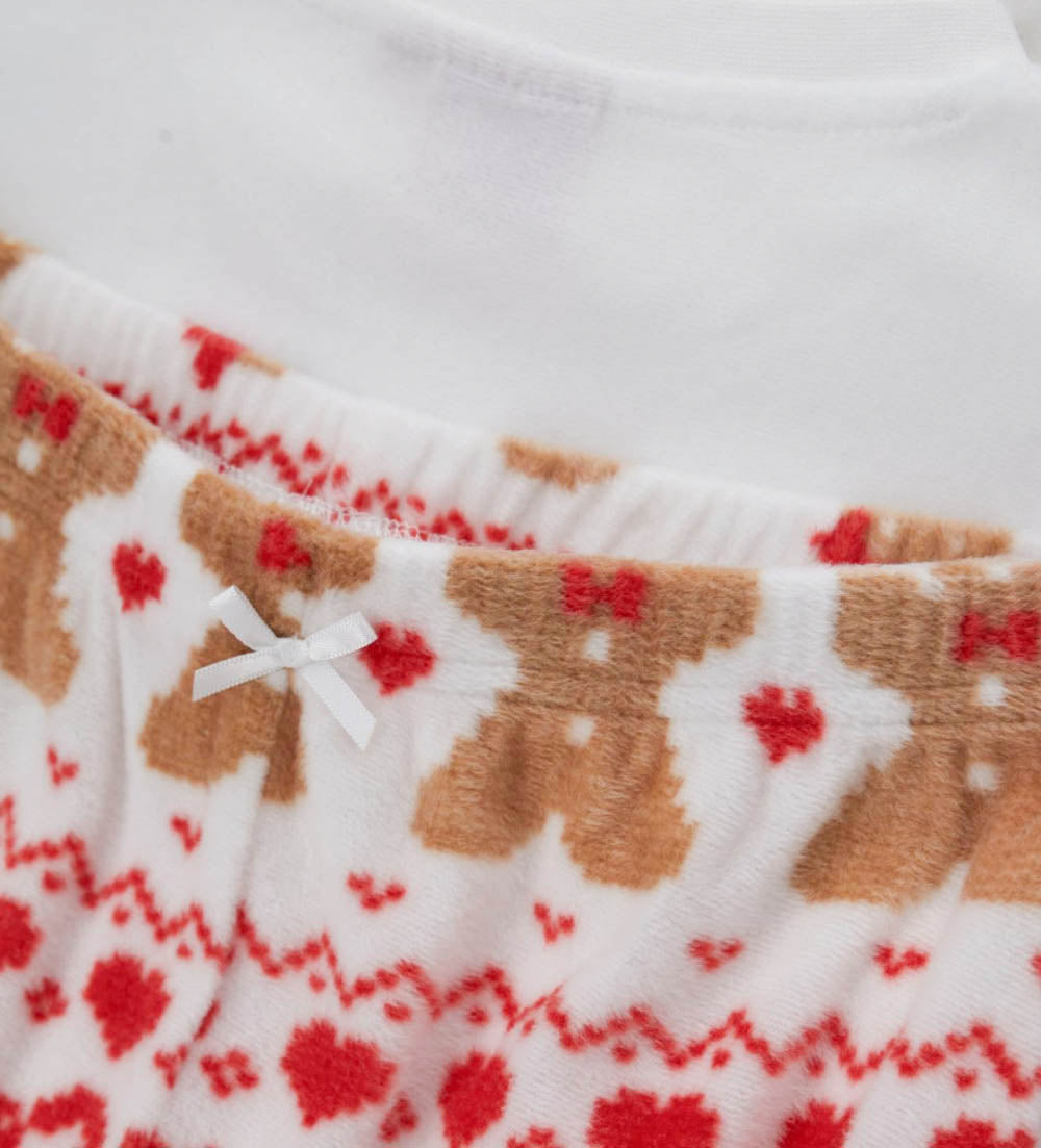 Pyjama à manches longues et col rond, orné d’appliqués et de broderies sur le devant. Pantalon imprimé intégral à taille élastiquée et ourlet côtelé pour un look confortable et tendance.