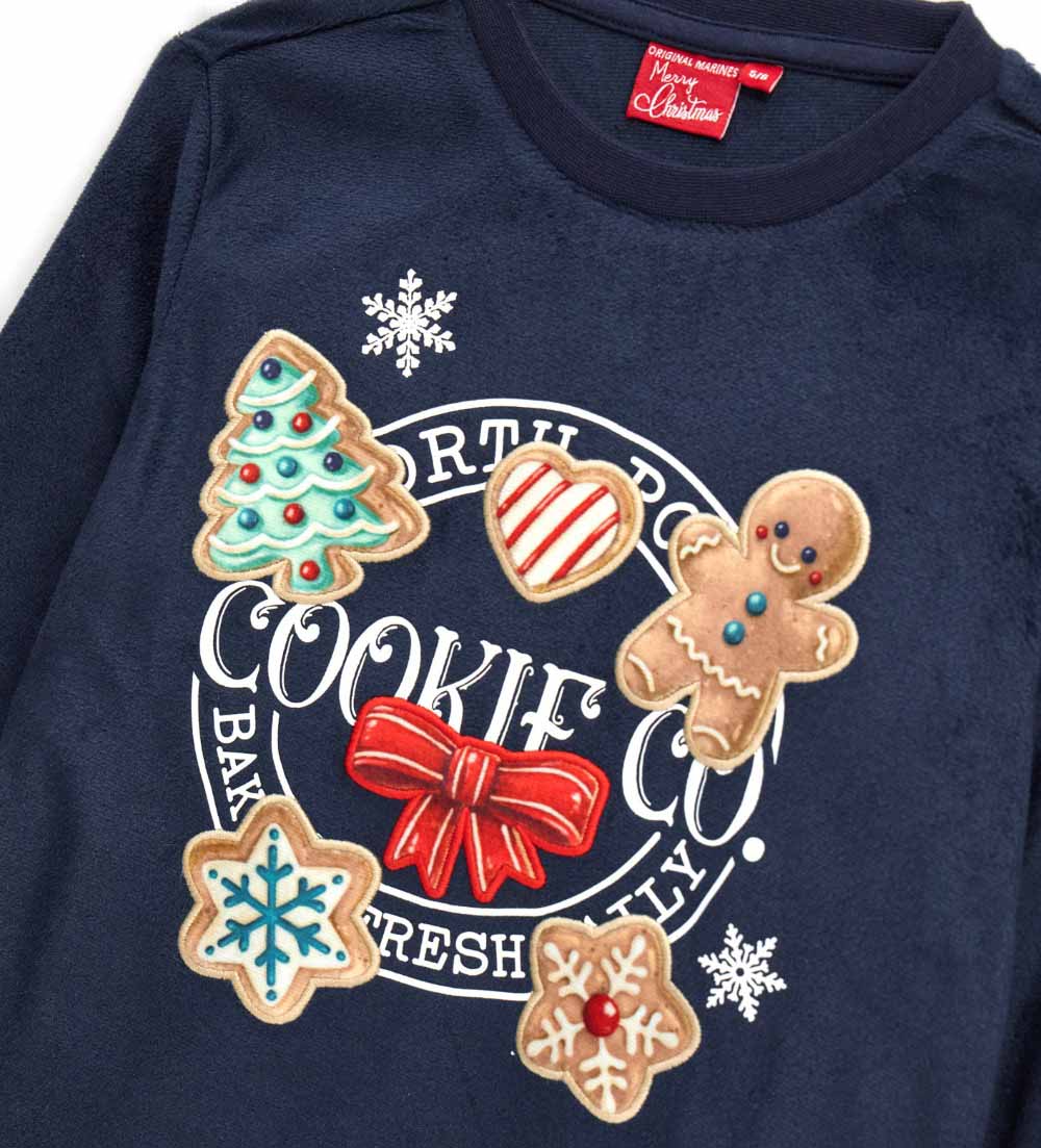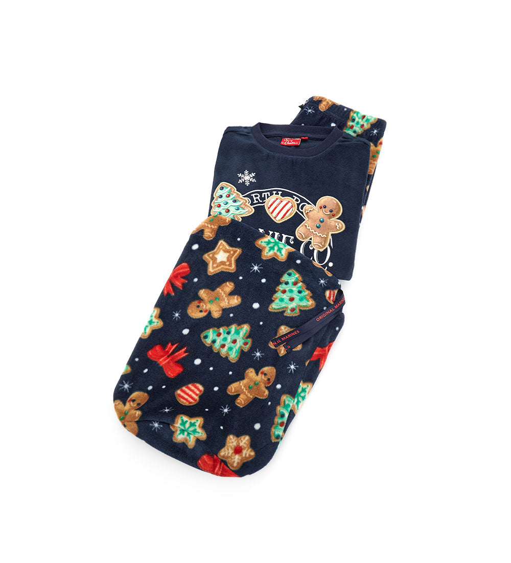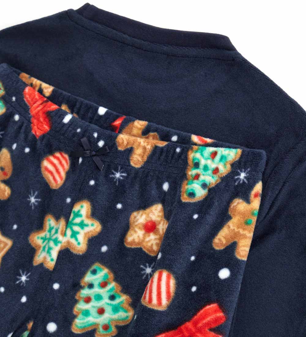 Pyjama à manches longues et col rond, orné d’appliqués et de broderies sur le devant. Pantalon imprimé intégral à taille élastiquée et ourlet côtelé pour un look confortable et tendance.