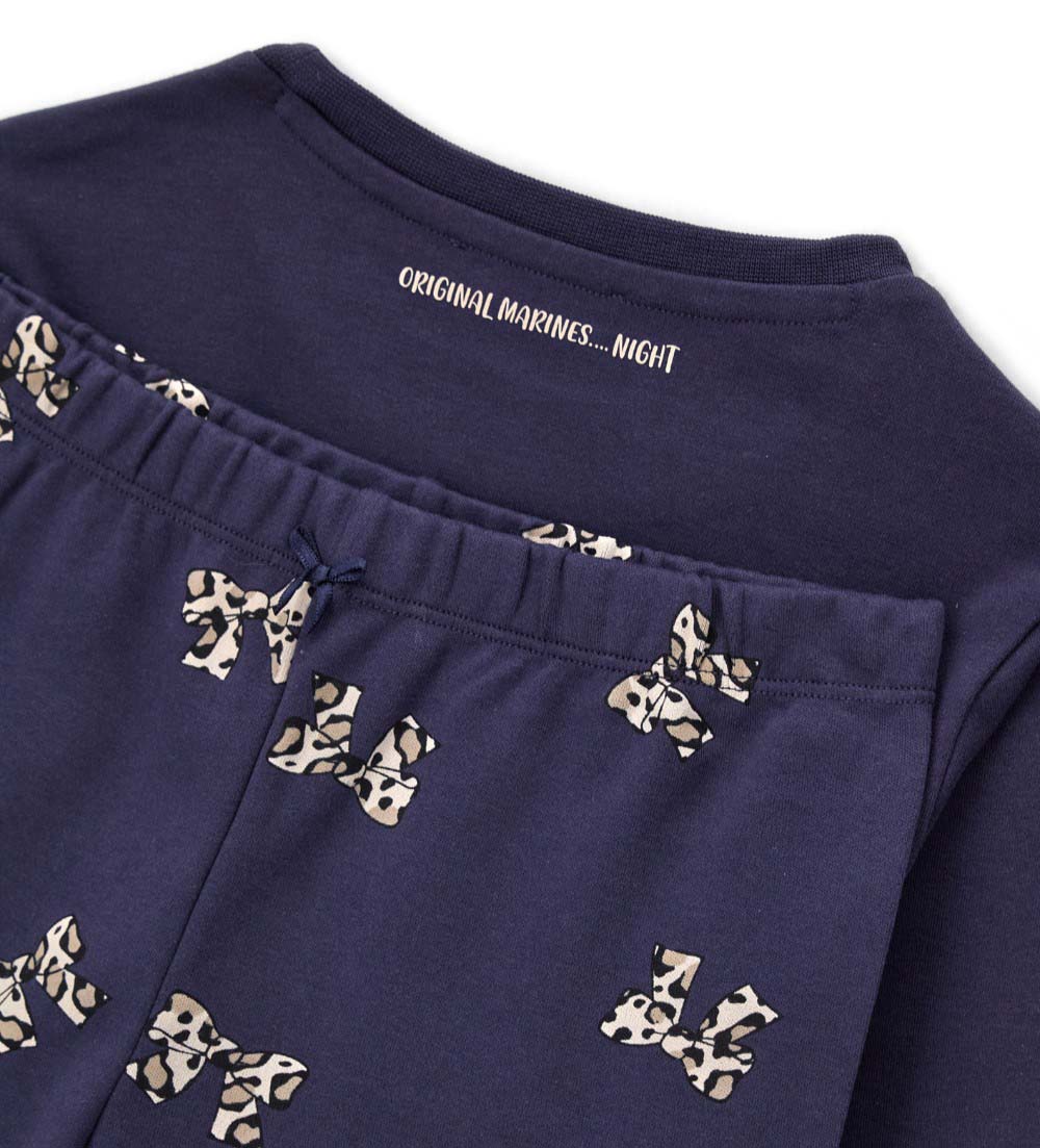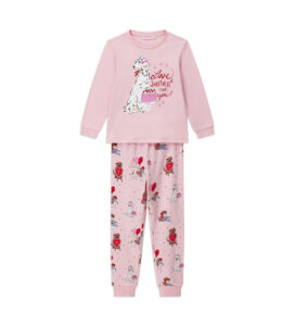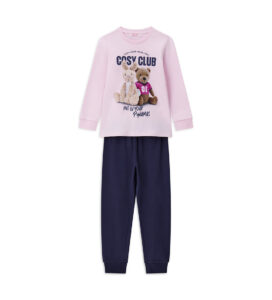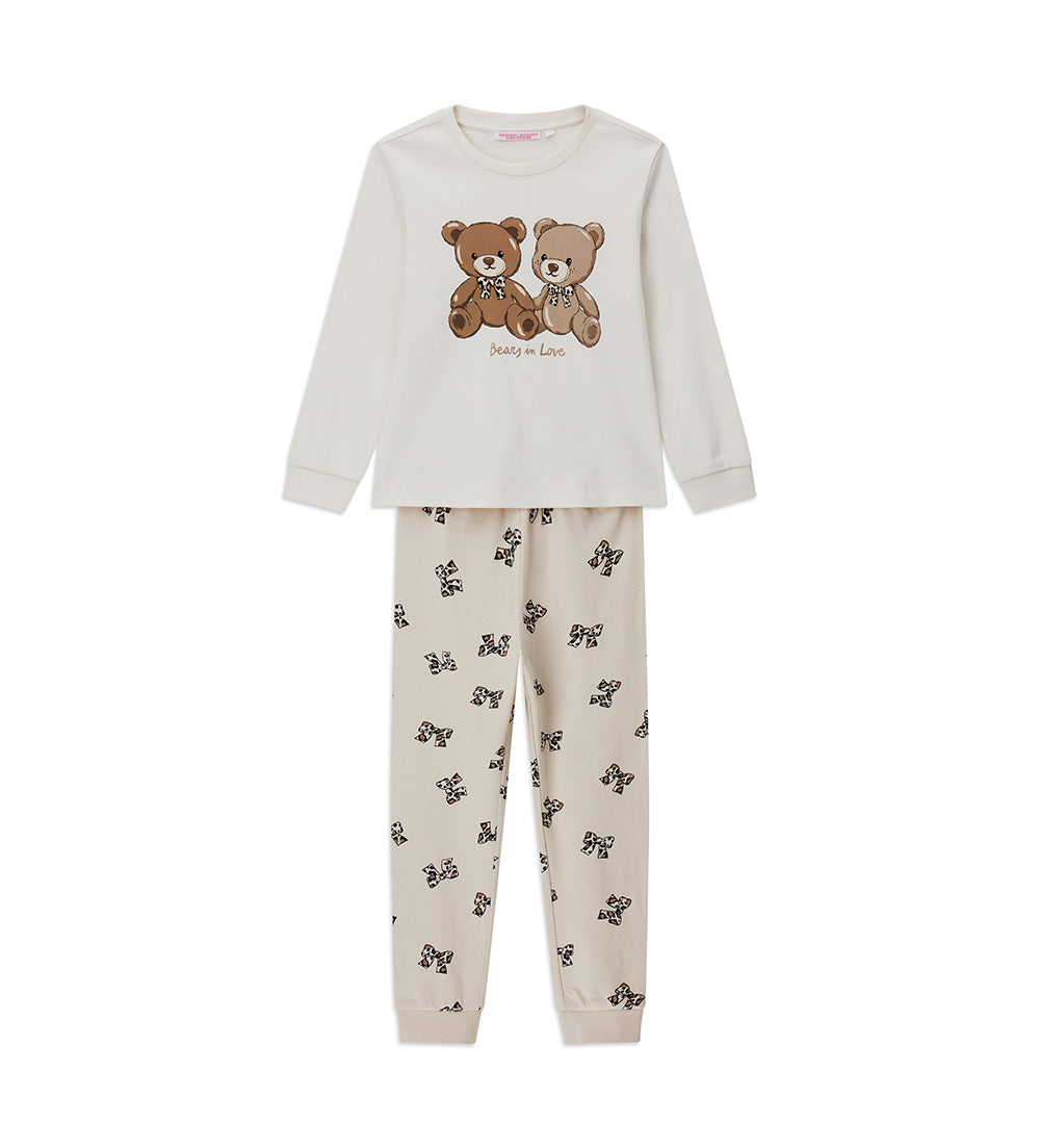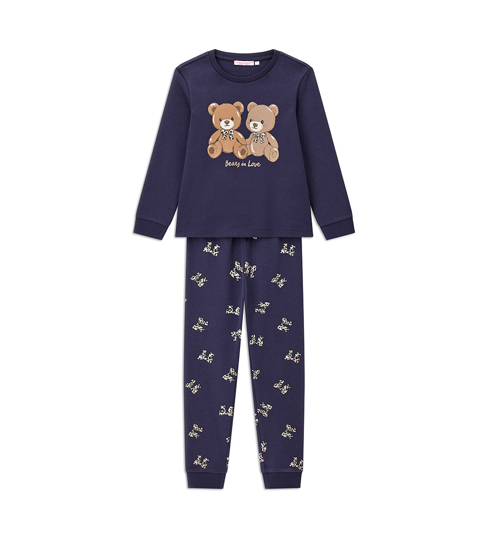 Pyjama chaud en coton composé d’un t-shirt col rond, d’un imprimé intégral et de finitions côtelées. Pantalon assorti avec imprimé, finitions côtelées et nœud.