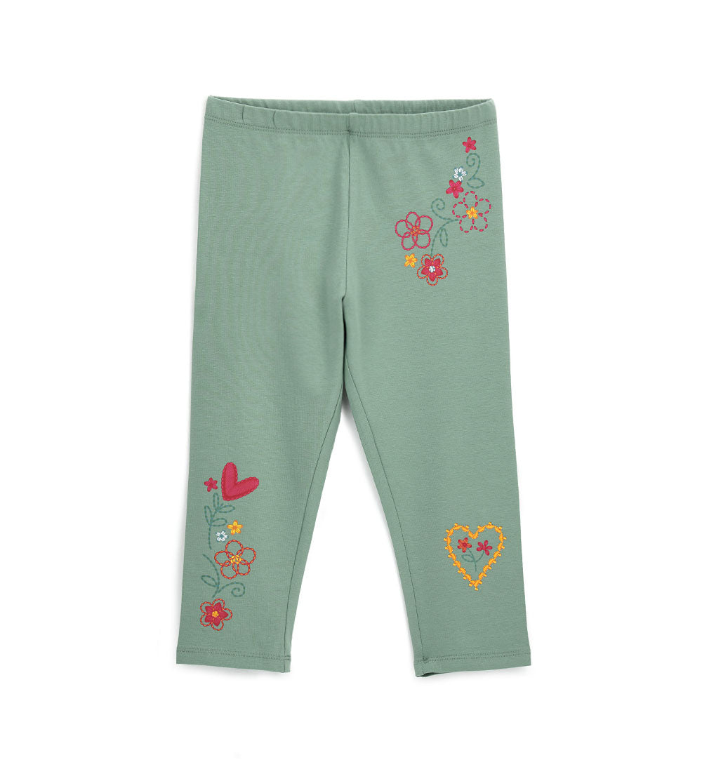 Legging en coton extensible avec taille élastique et imprimés sur le devant.