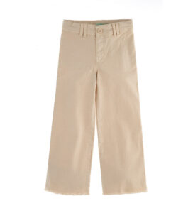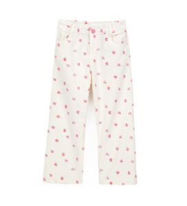 Jean Disney avec ouverture zippée et bouton pression émaillé, taille élastiquée avec volants, fleurs brodées sur les poches avant et arrière et broderie Minnie Mouse sur le devant avec détails paillettes.
