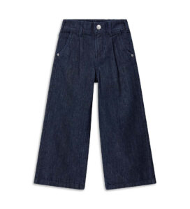 Jean large à taille ajustable et boutonnage sur le devant. Poches plaquées au dos et détails élégants en appliqués et paillettes sur le devant pour une touche de glamour et de style.