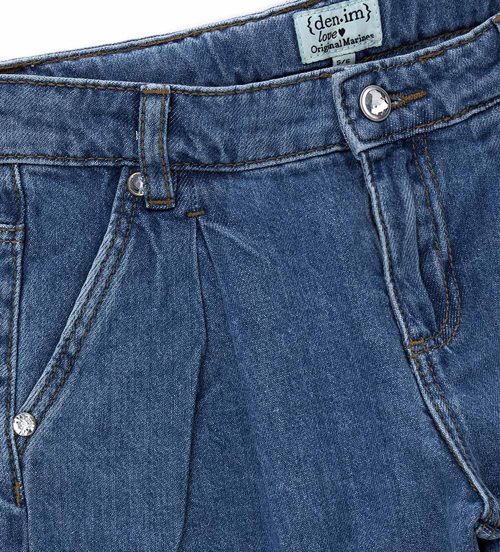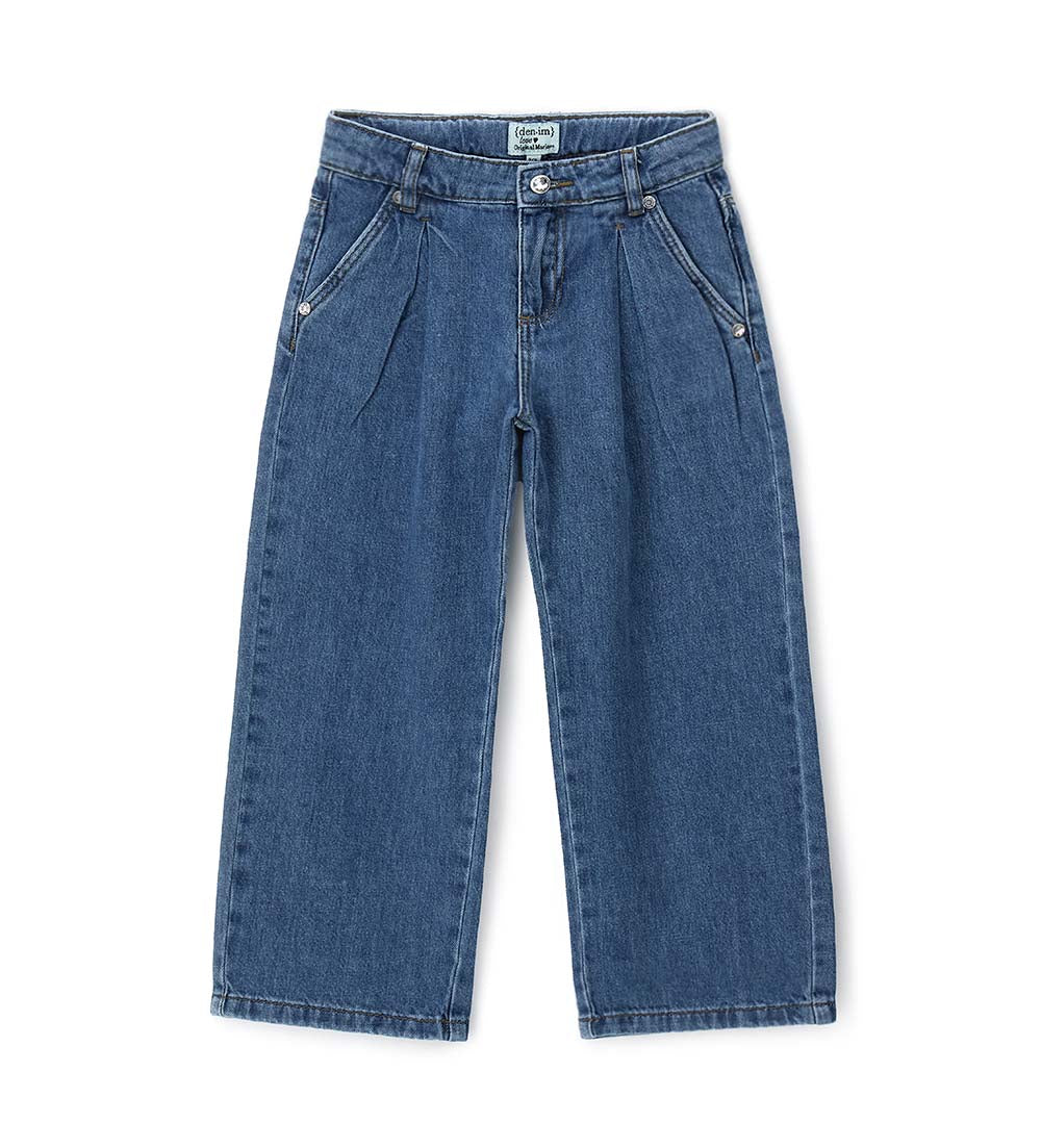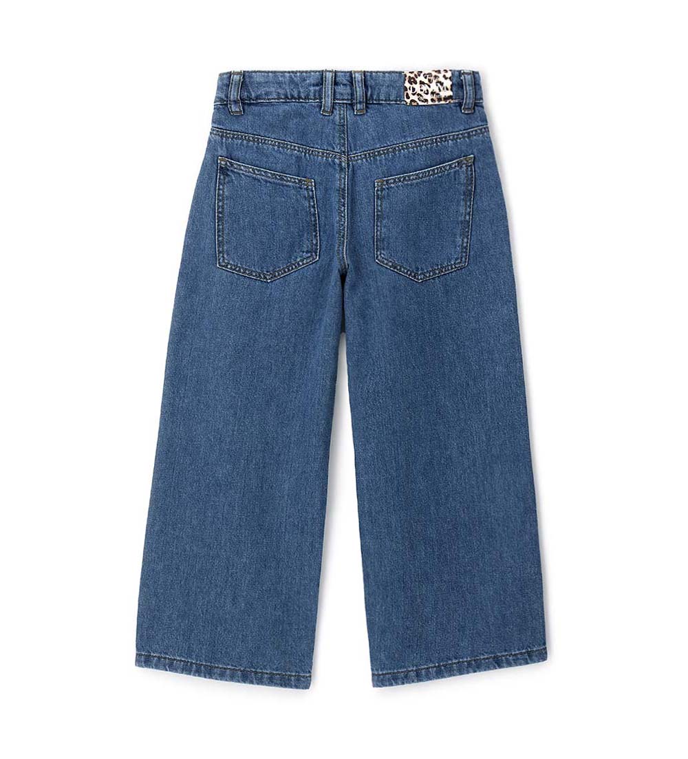 Jean large à taille ajustable et fermeture raffinée sur le devant avec bouton bijou. Poches avant et poches plaquées au dos pour un look confortable et tendance.