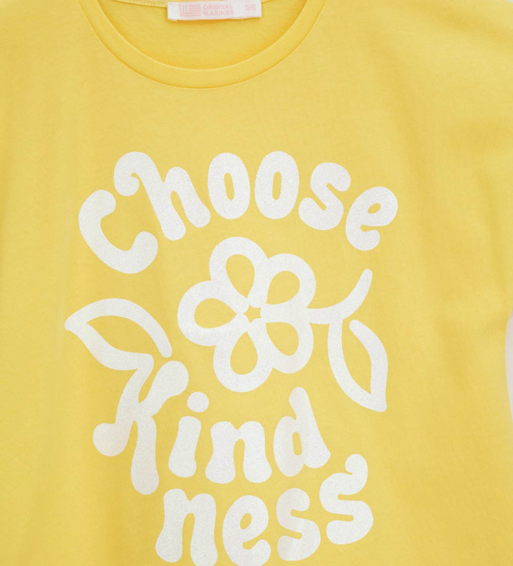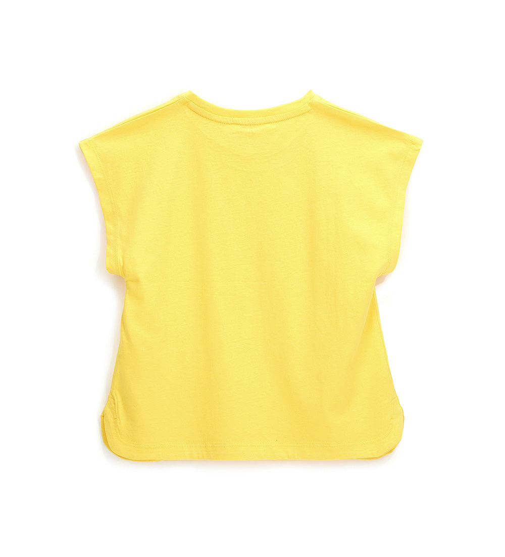 T-shirt en coton à col rond avec manches kimono, ourlet arrondi avec fentes latérales et imprimé pailleté.