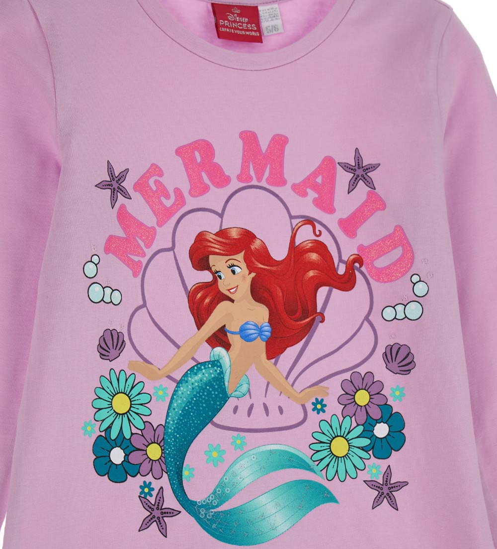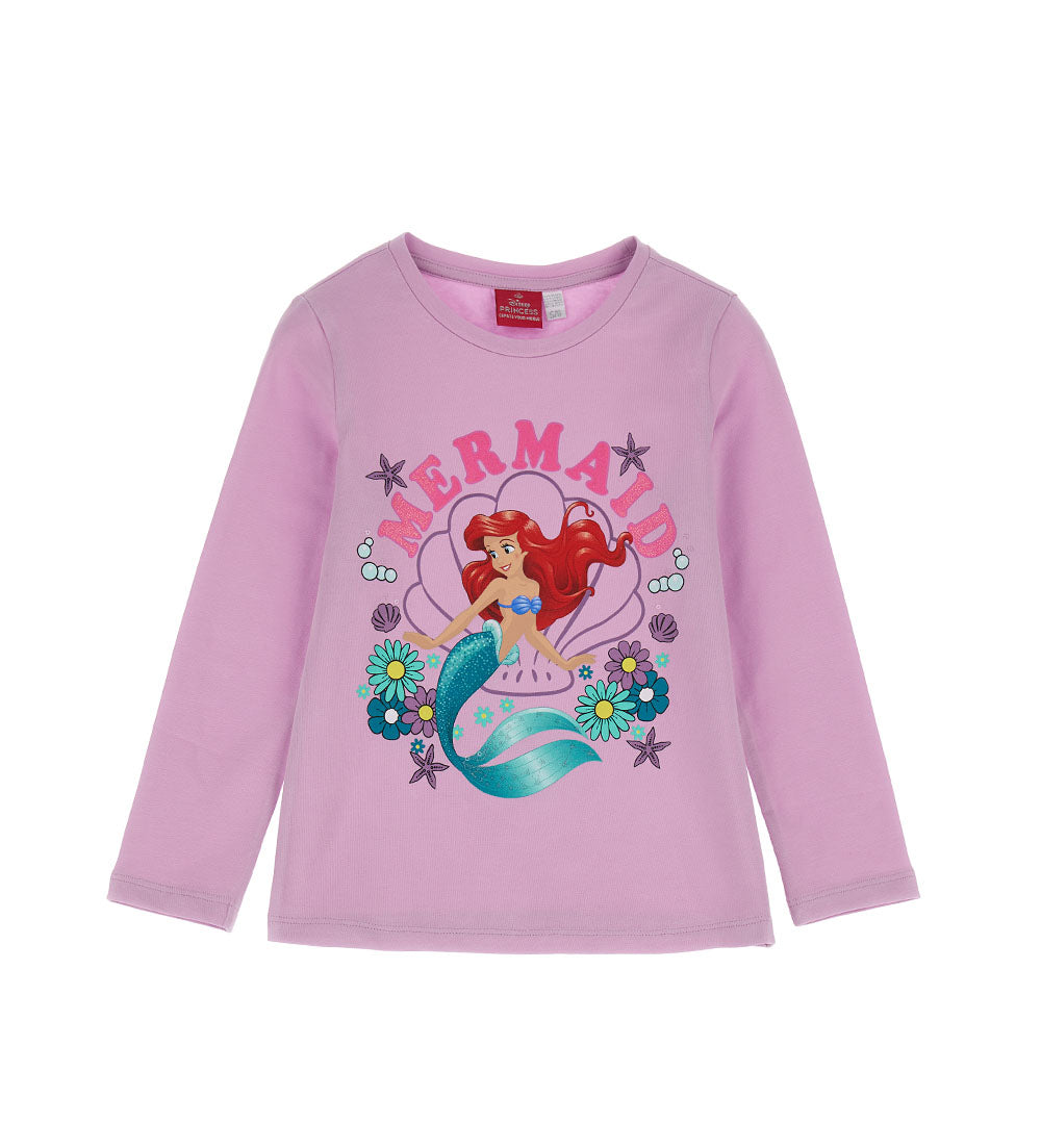T-shirt Disney La Petite Sirène en coton extensible, col ras du cou, manches longues avec imprimé détails paillettes.