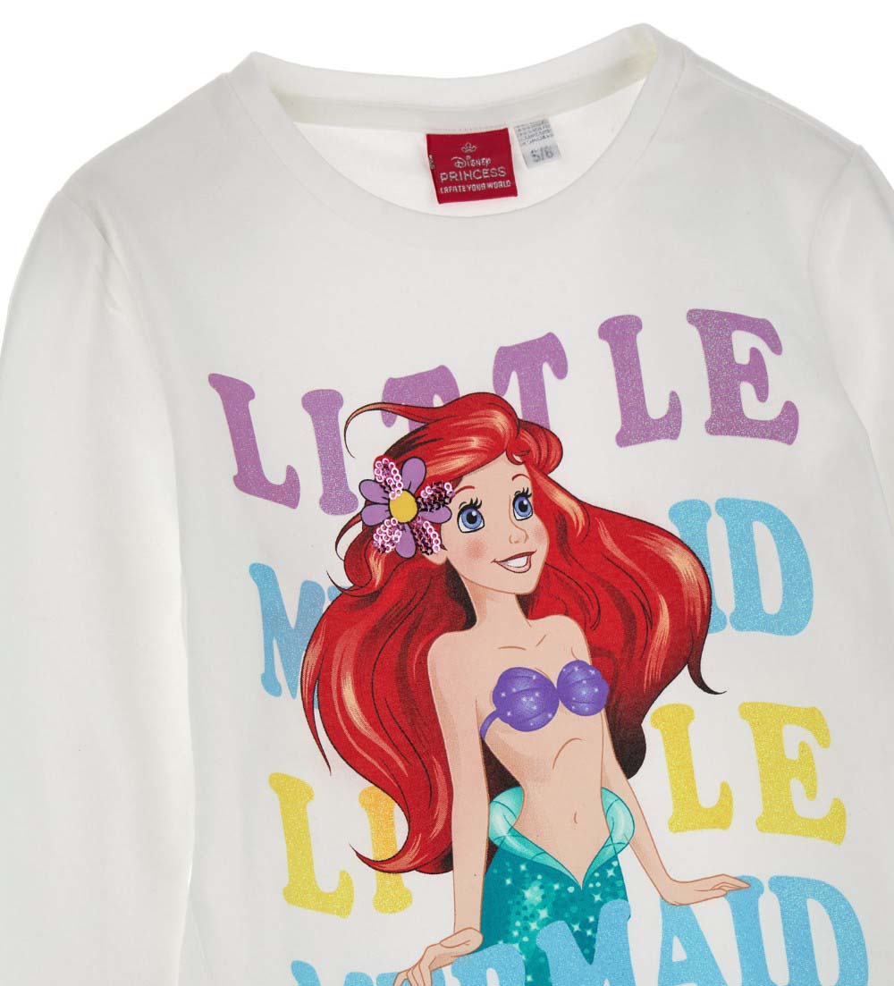 T-shirt Disney La Petite Sirène en coton extensible, col ras du cou, manches longues avec imprimé détails paillettes.