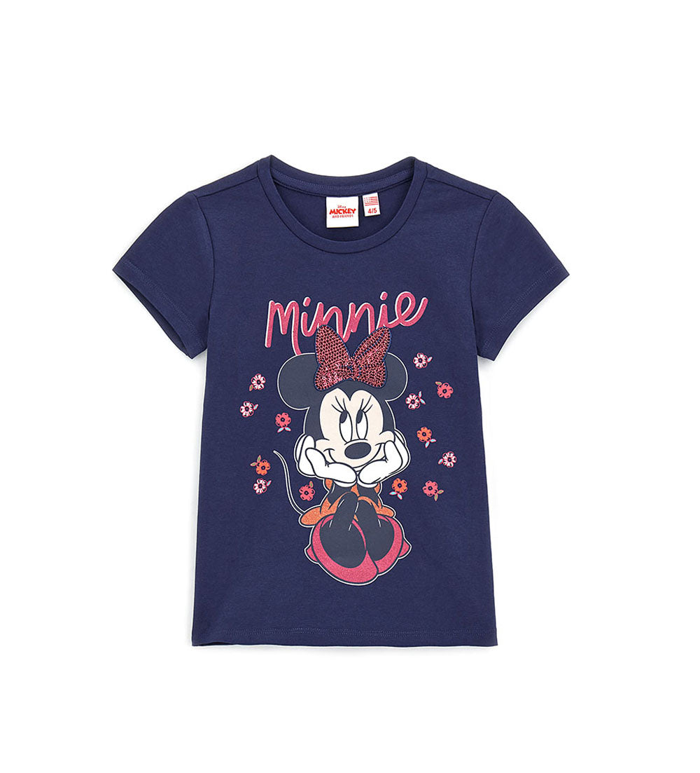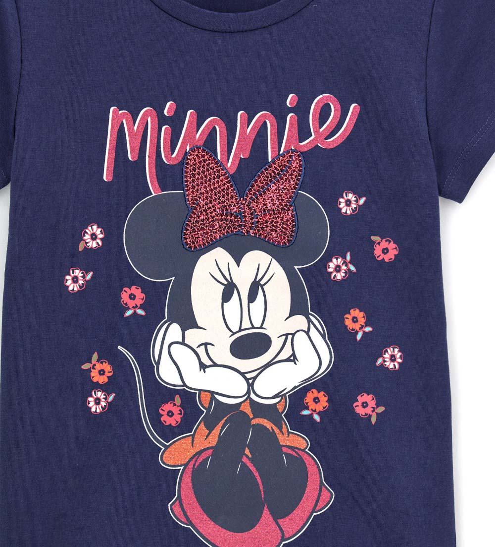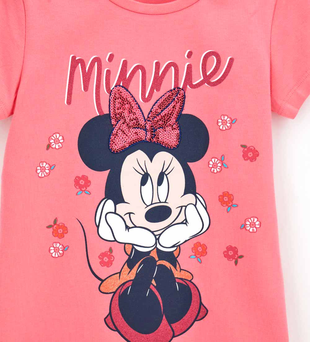 T-shirt Disney en coton extensible, col ras du cou, manches courtes avec imprimé Minnie Mouse avec détails pailletés et sequins.
