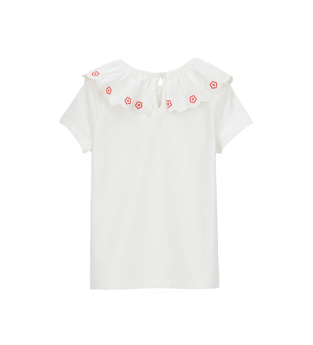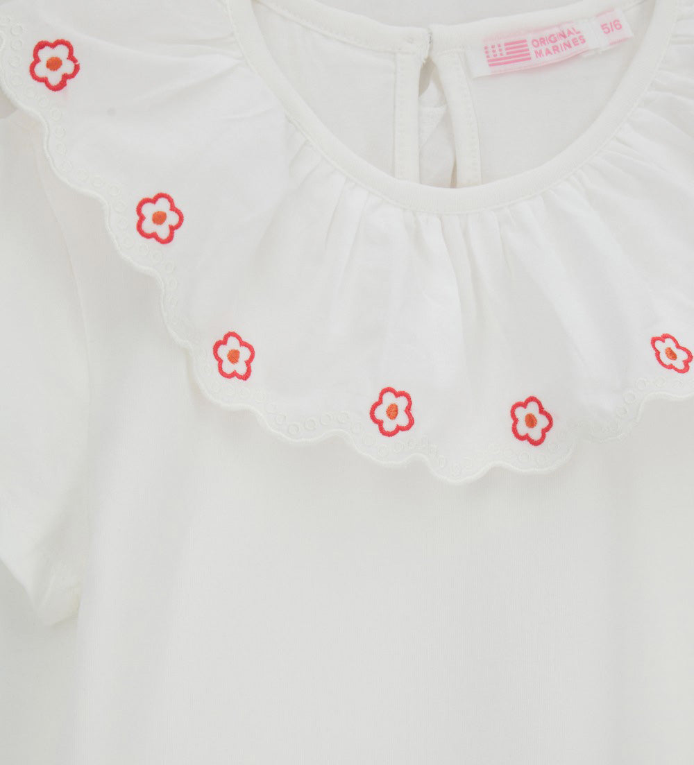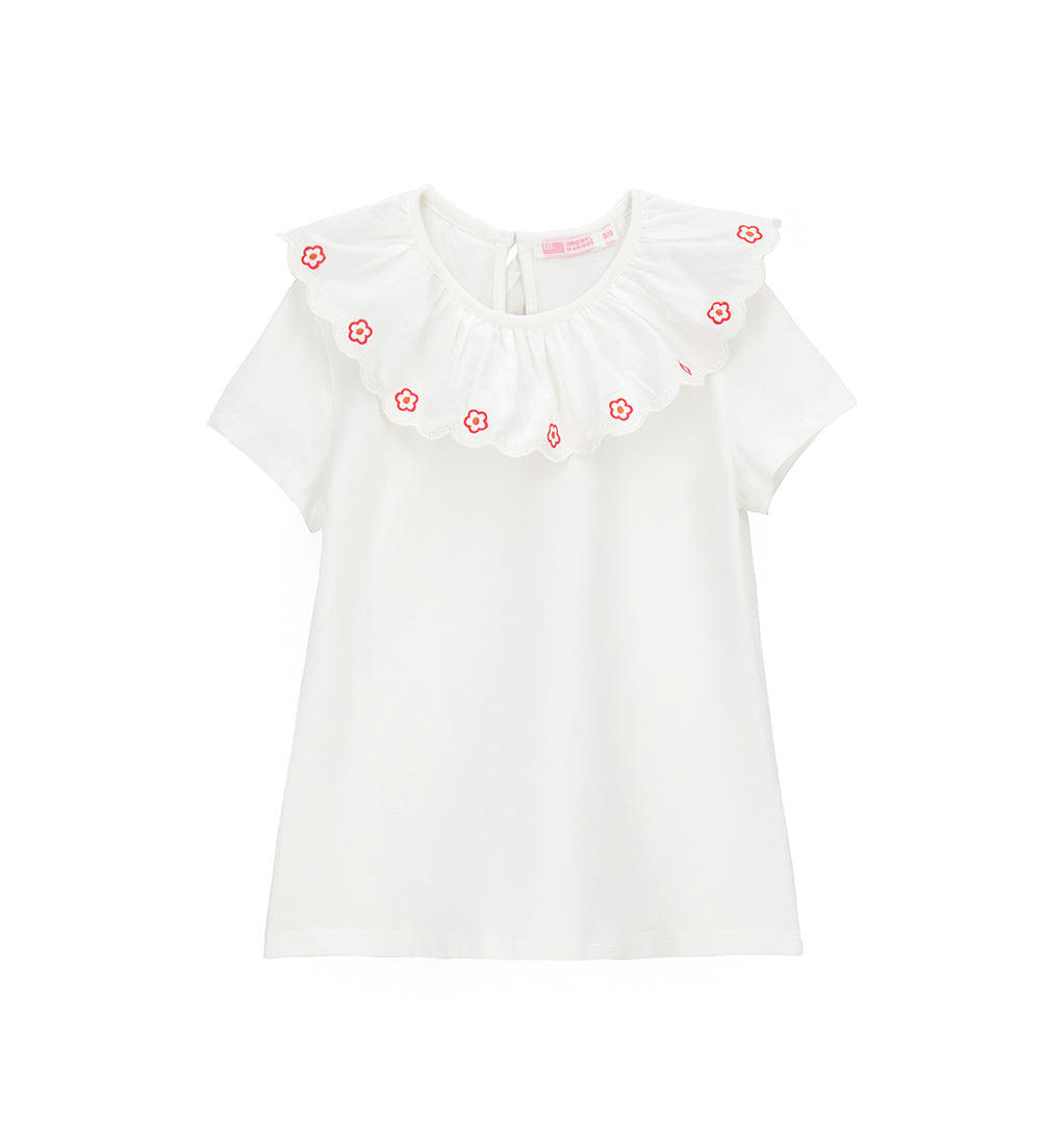 T-shirt en coton extensible avec col ras du cou, manches courtes et col en coton brodé.