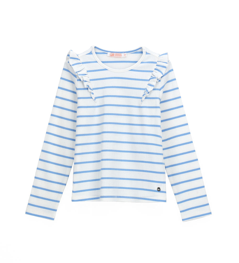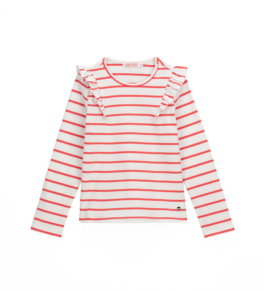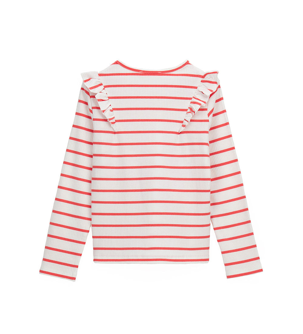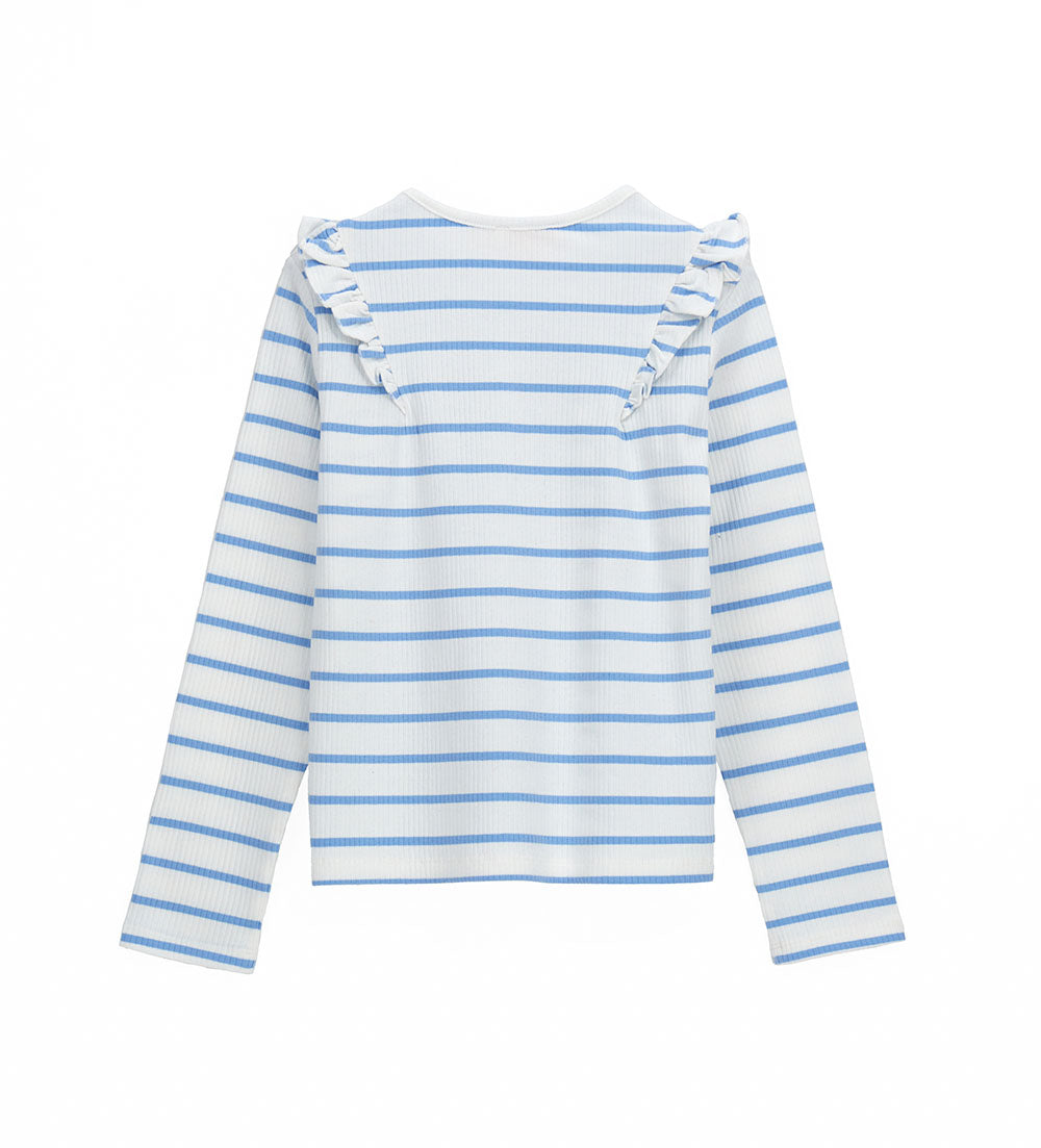 T-shirt en coton côtelé teint en fil avec col ras du cou et manches longues.