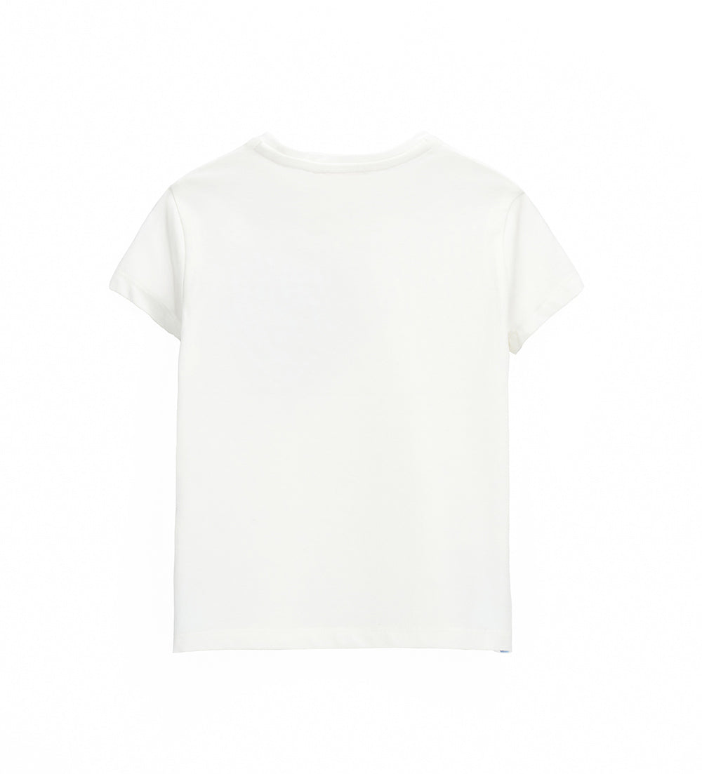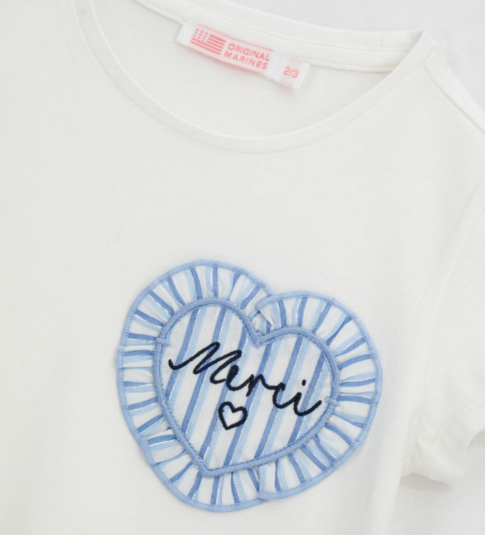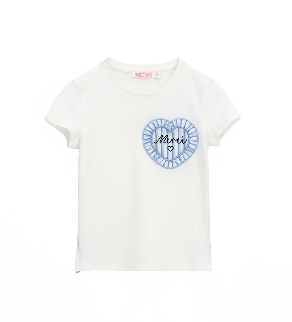 T-shirt en coton extensible avec col ras du cou, manches courtes et applications teintes en fil sur le devant.
