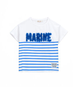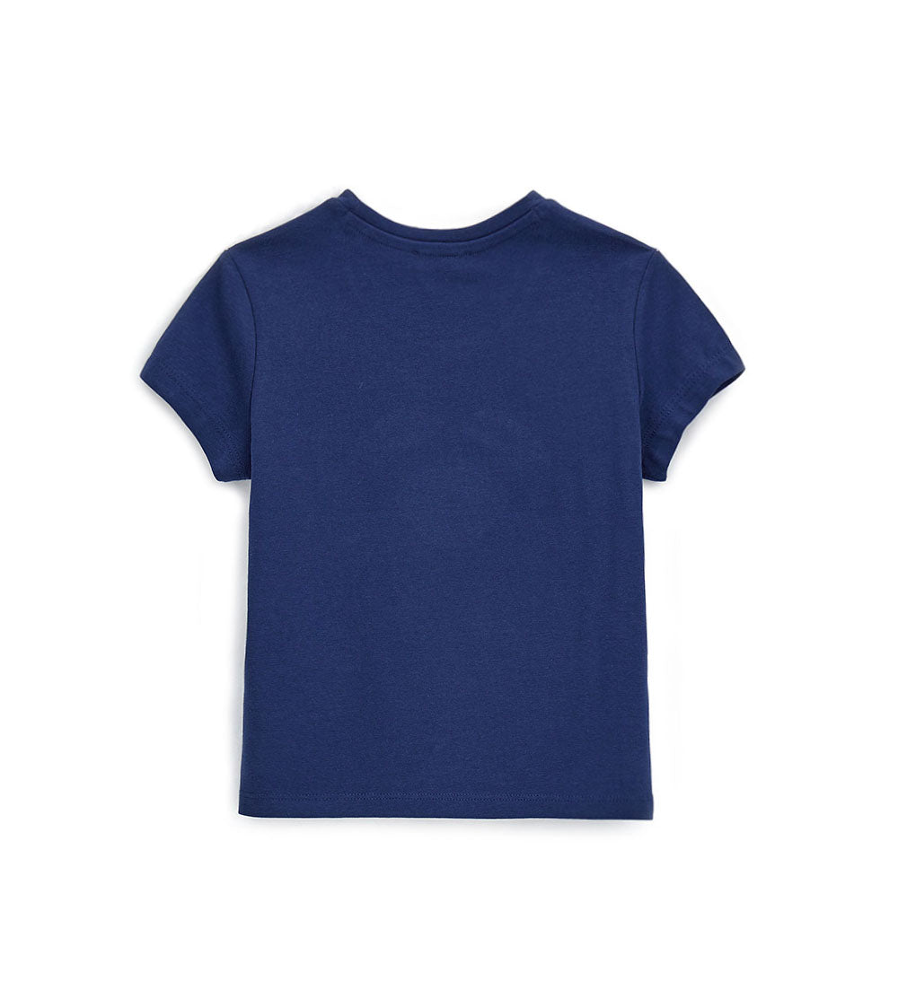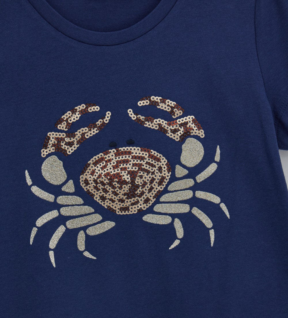 T-shirt à col ras du cou et manches courtes en coton extensible avec imprimé paillettes et broderie sur le devant.