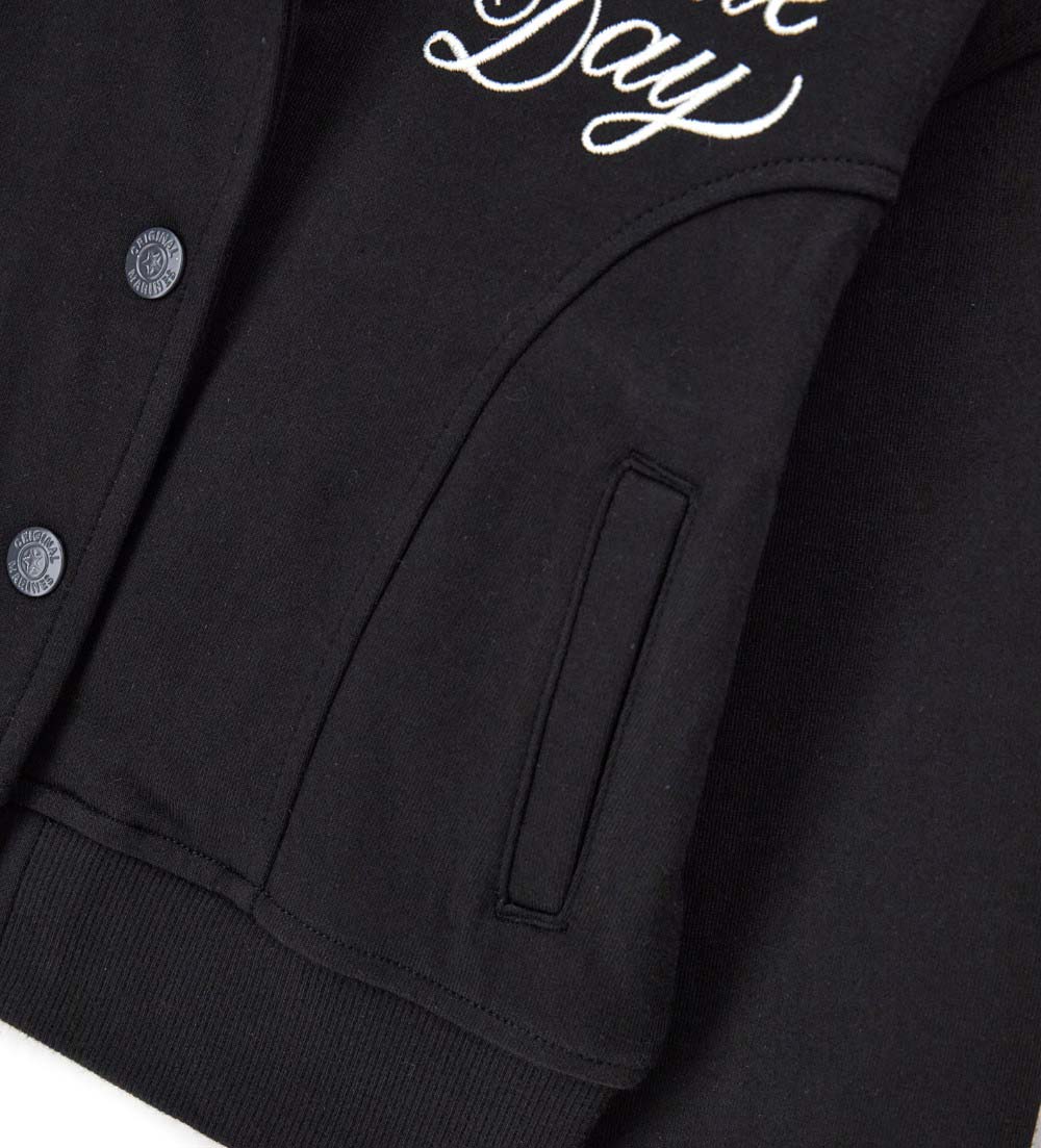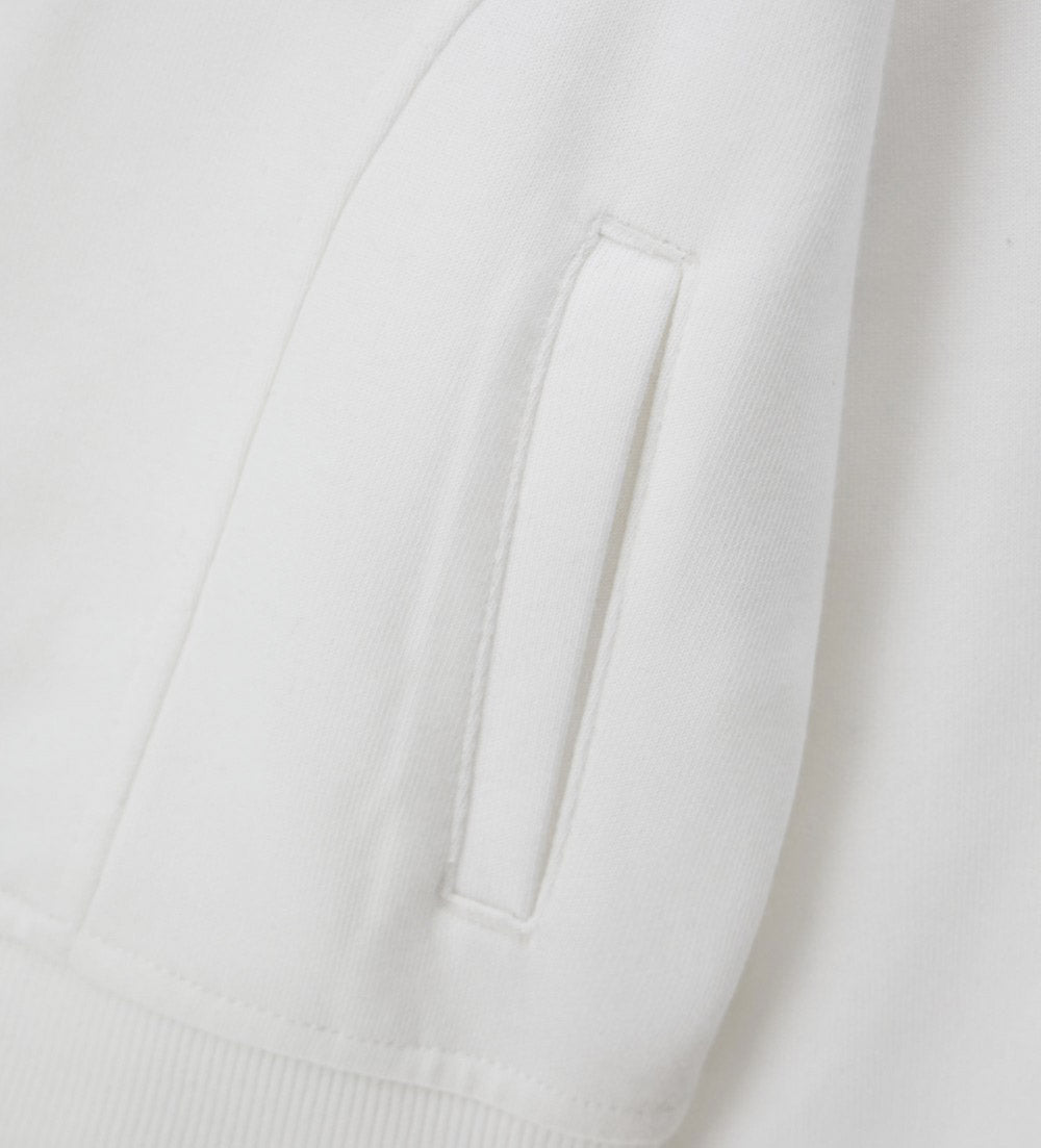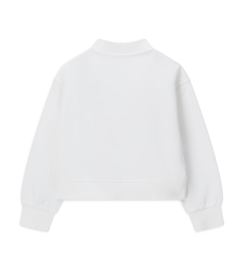 Sweat-shirt en coton extensible à col rond et manches longues. Finitions côtelées, poches avant pratiques, ouverture par boutons-pression et broderie raffinée côté cœur.