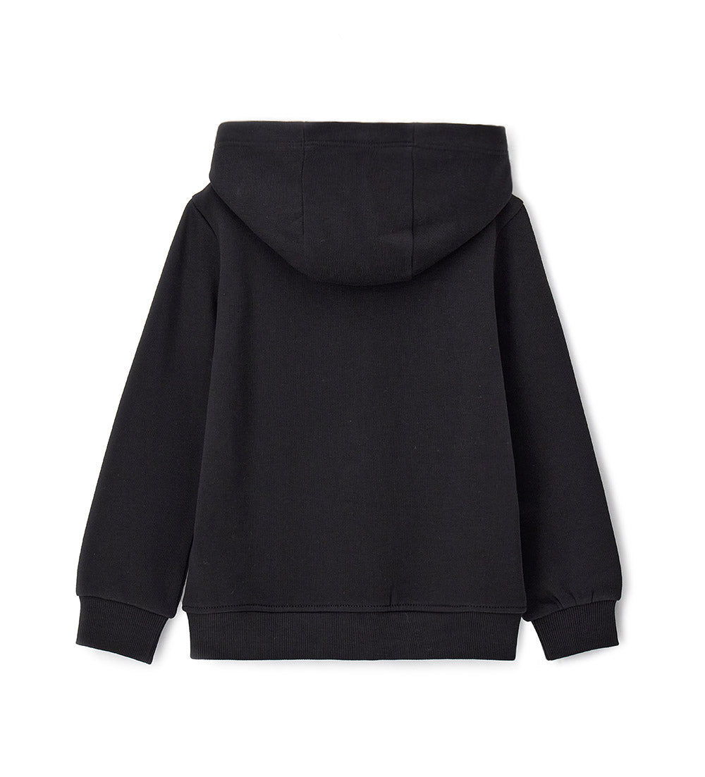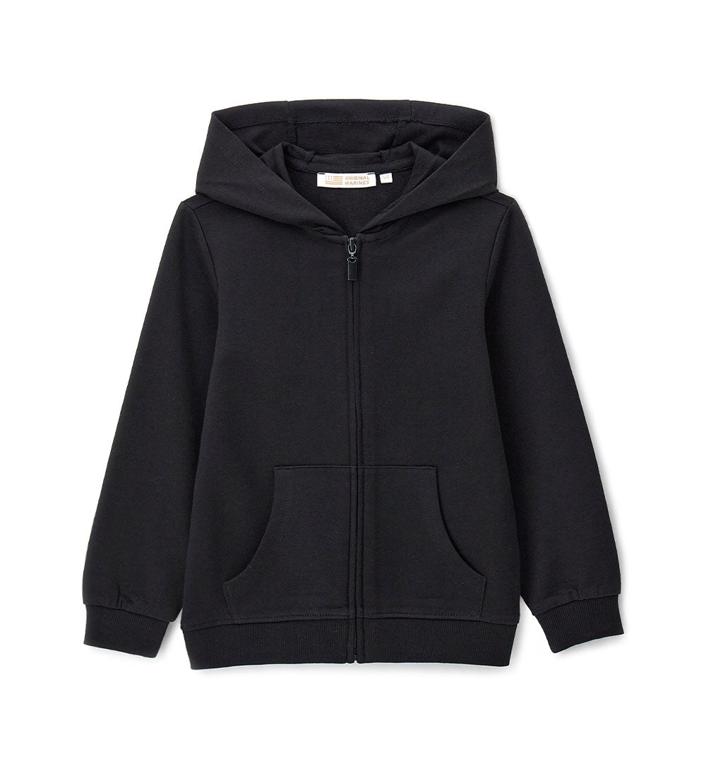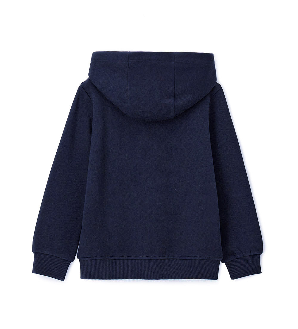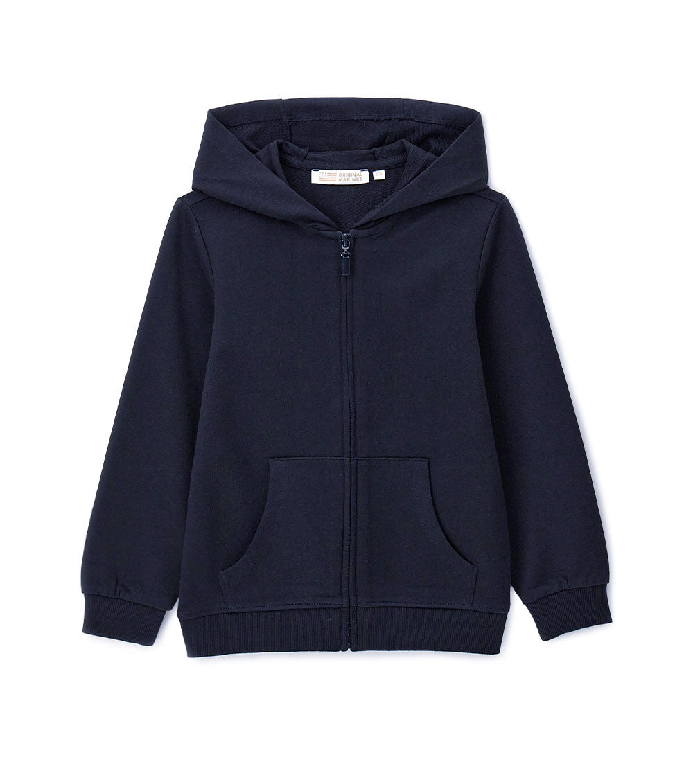 Veste chaude en polaire de coton avec capuche, idéale pour les journées fraîches. Ouverture zippée sur le devant et bas côtelé pour plus de confort.
