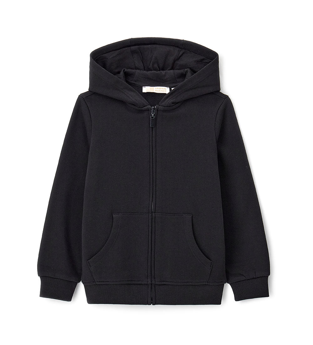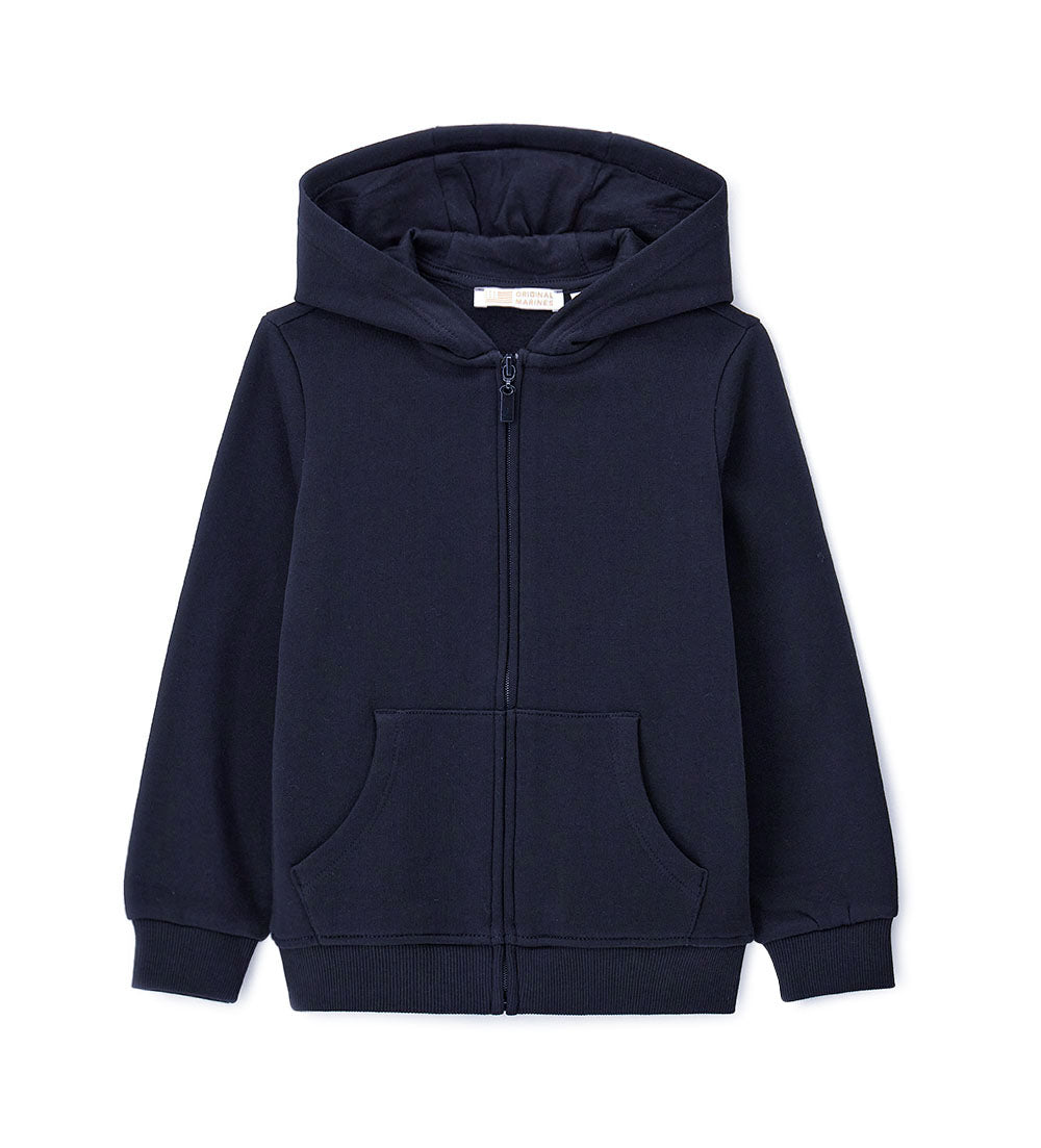 Veste chaude en polaire de coton avec capuche, idéale pour les journées fraîches. Ouverture zippée sur le devant et ourlets côtelés pour plus de confort.